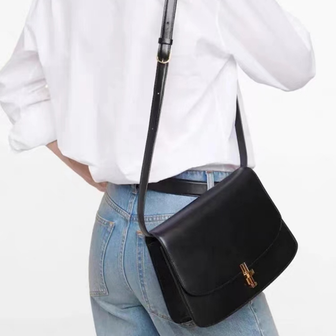 新款女士斜挎包高级感包包单肩包真皮时尚优雅复古T形金属扣