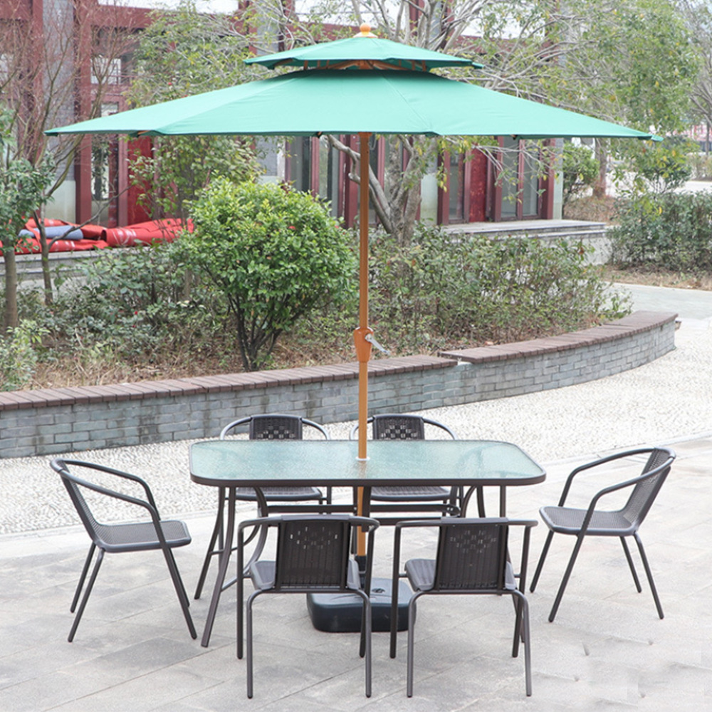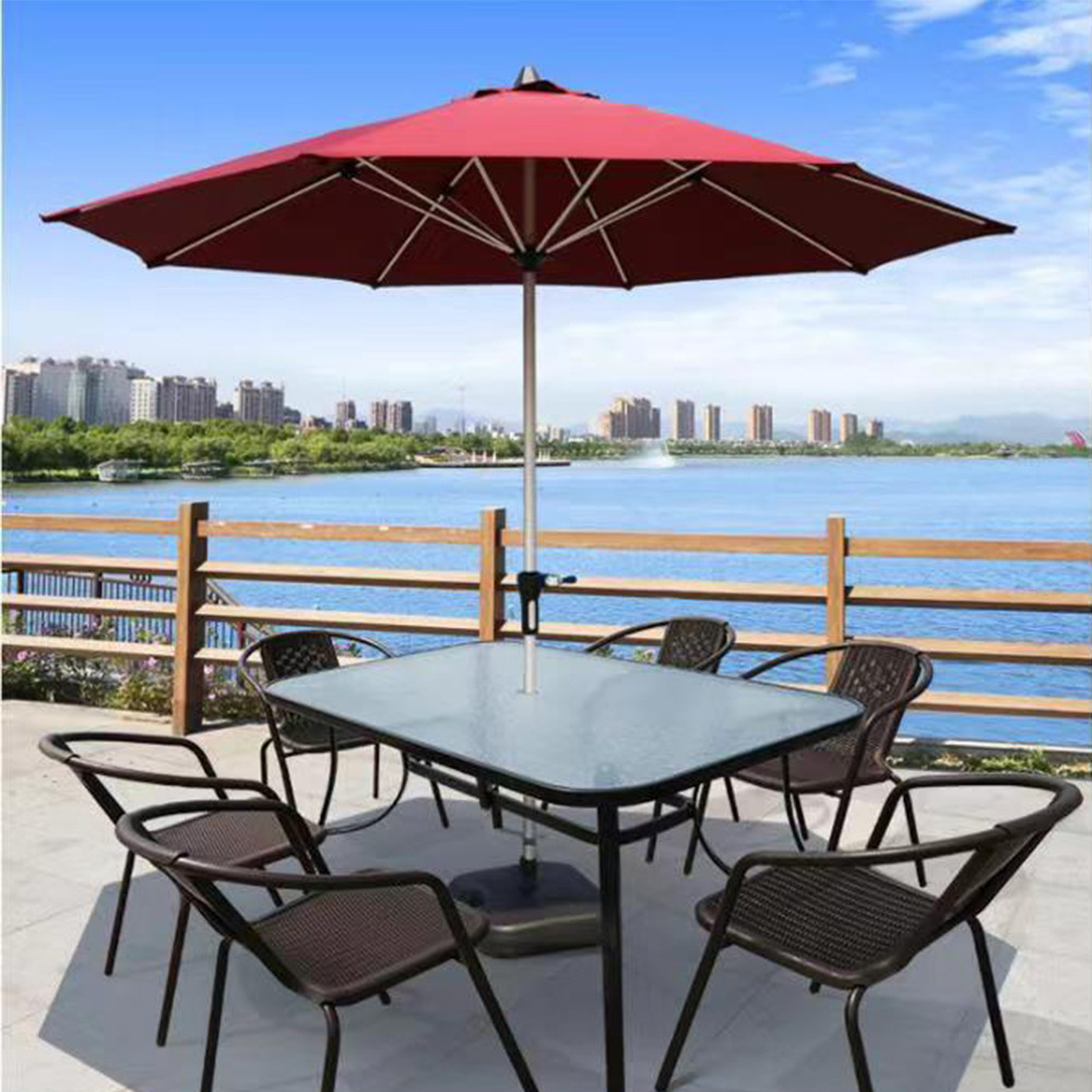 | 尺寸 | 230g/㎡PA涂层涤纶布双顶手摇仿木伞直径2.7M【含7KG塑胶底座】 | 尺寸 | 180g/㎡涤纶布铁架手摇伞直径2.7M【含22KG大理石底座】 |