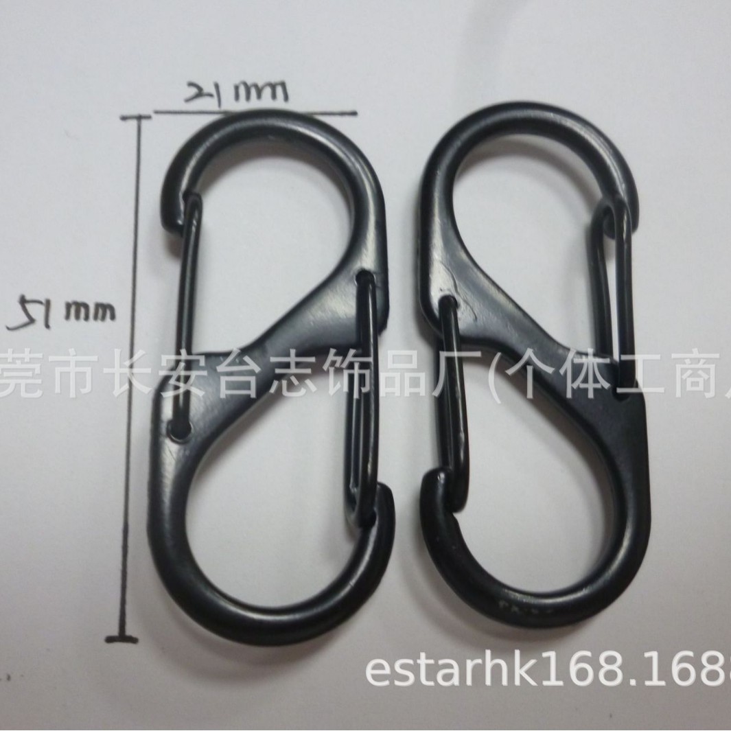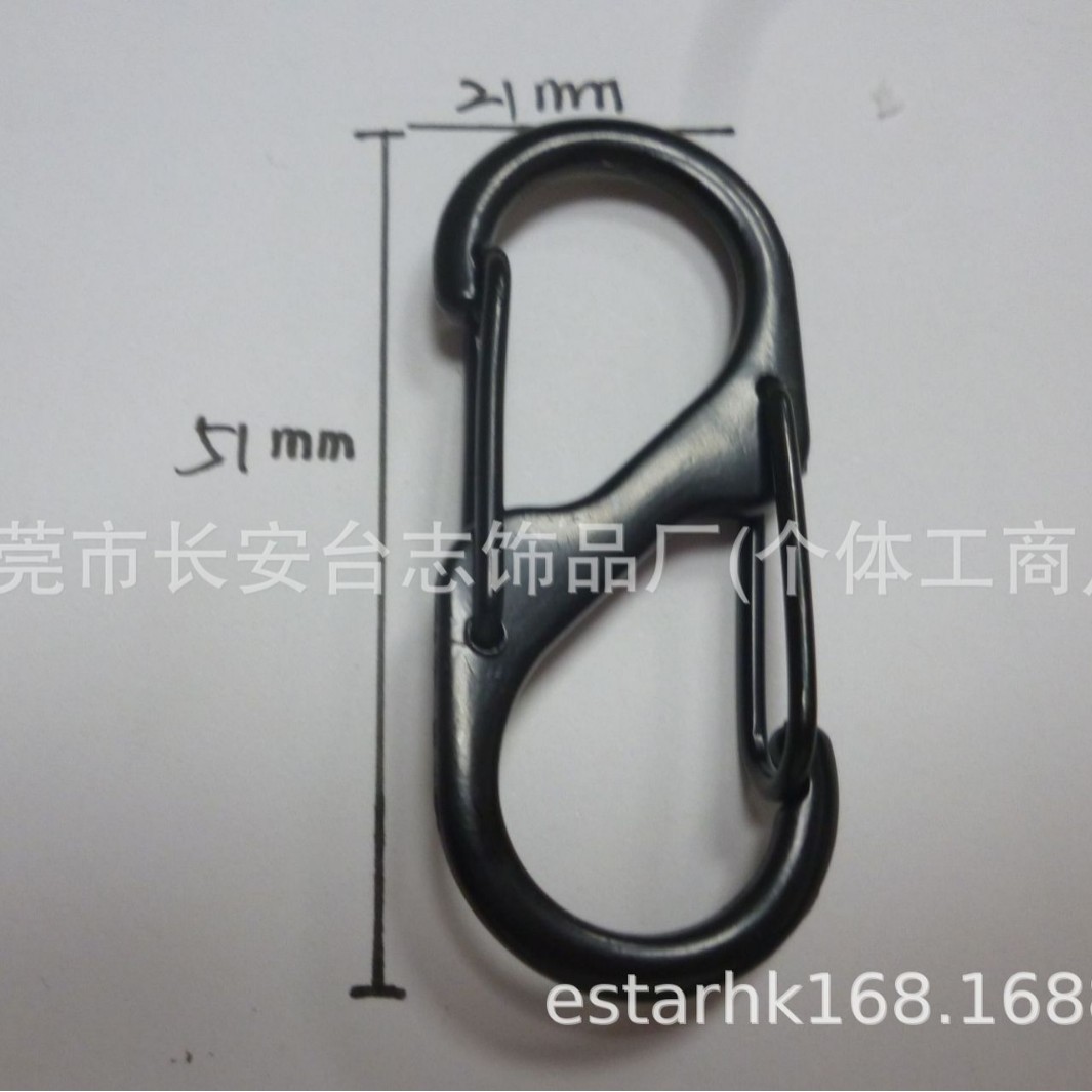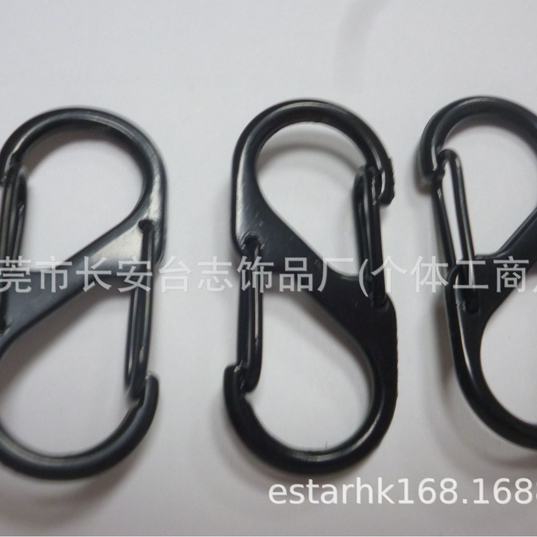 供应黑色钥匙扣S型安全弹力扣黑色登山扣户外钥匙扣批发