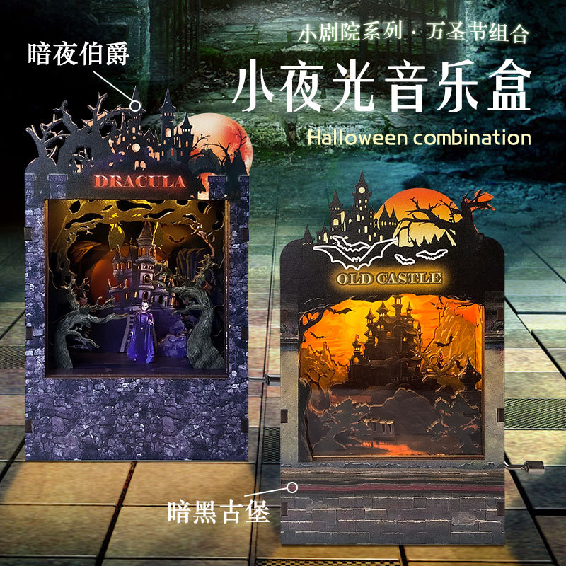 恐龙世纪小夜灯音乐盒3d拼图手工拼装玩具创意DIY礼物手摇八音盒