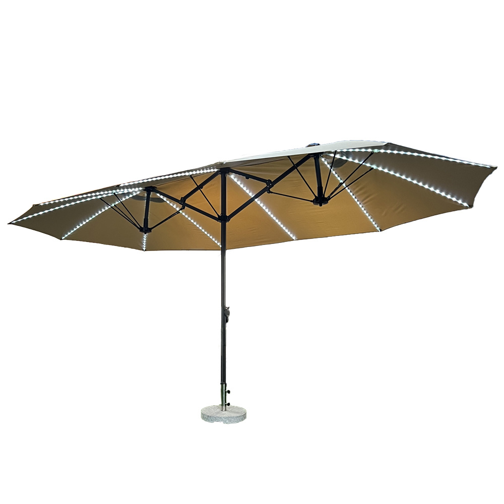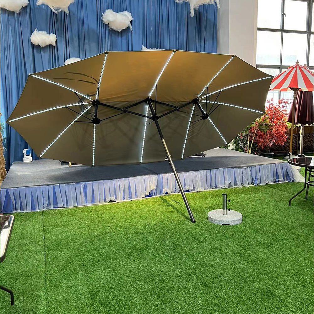 户外三头遮阳伞铝合金休闲中柱伞大型沙滩露营伞室外庭院花园伞