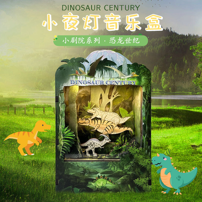 小剧场发光音乐盒手工diy玩具木质小夜灯3D益智拼图手摇八音盒