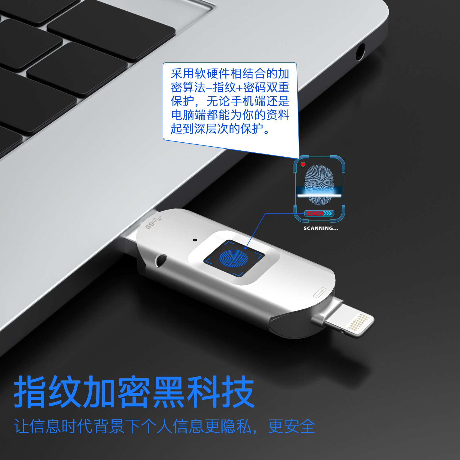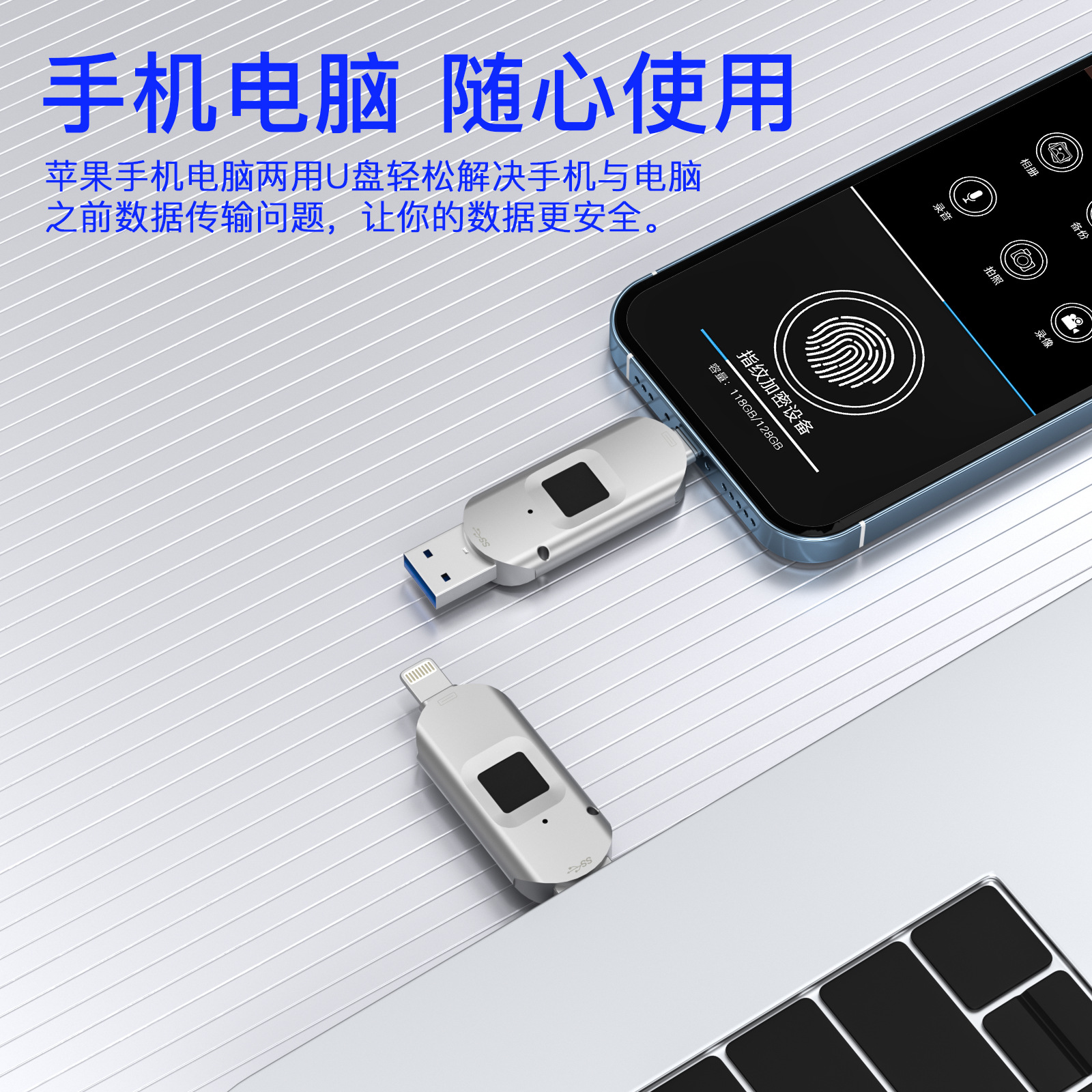 适用USB3.0高速苹果指纹加密U盘支持电脑二合一苹果加密U盘