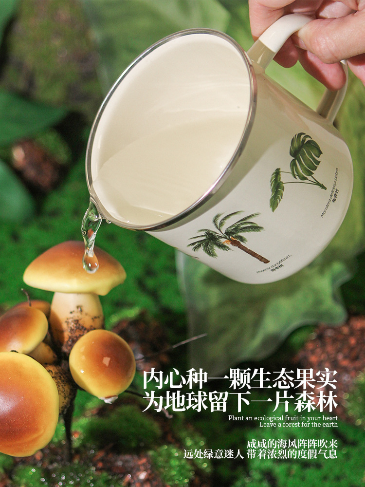 K9HX批发鲸语植物图鉴生态杯搪瓷马克杯露营咖啡杯送女朋友情人节