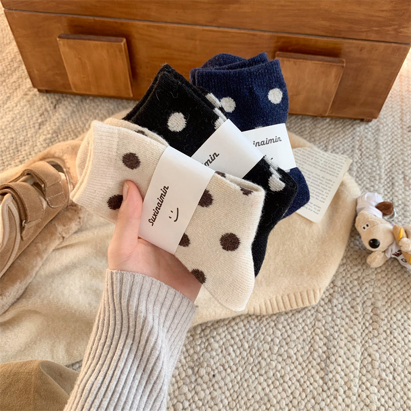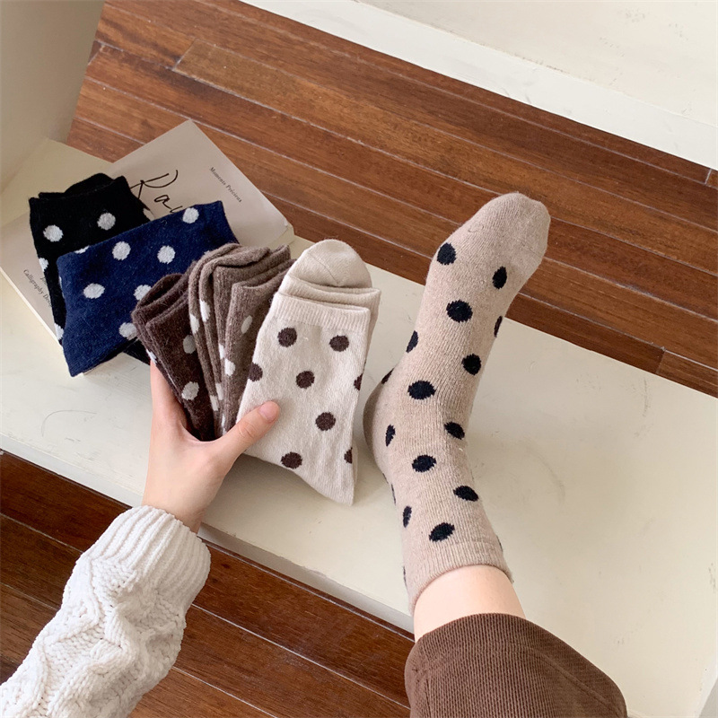 袜子女秋冬加厚保暖日系百搭波点黑色羊毛美拉德咖色诸暨中筒袜