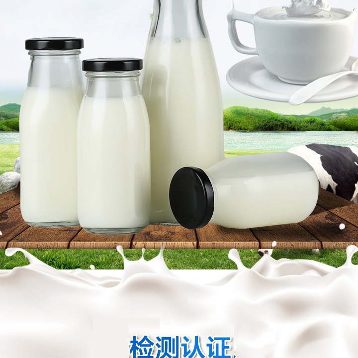 批发牛奶玻璃瓶200m丝口/压盖密封玻璃瓶牛奶瓶鲜奶瓶果汁饮料瓶