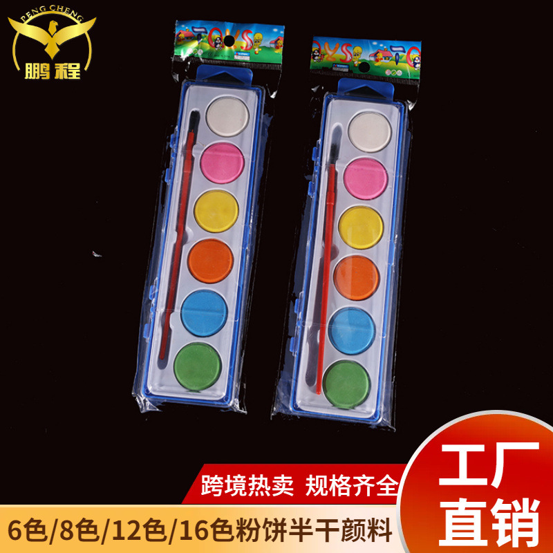 跨境儿童美术颜料8色12色大方盒半干固体颜料 粉饼绘画套装水彩画