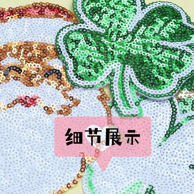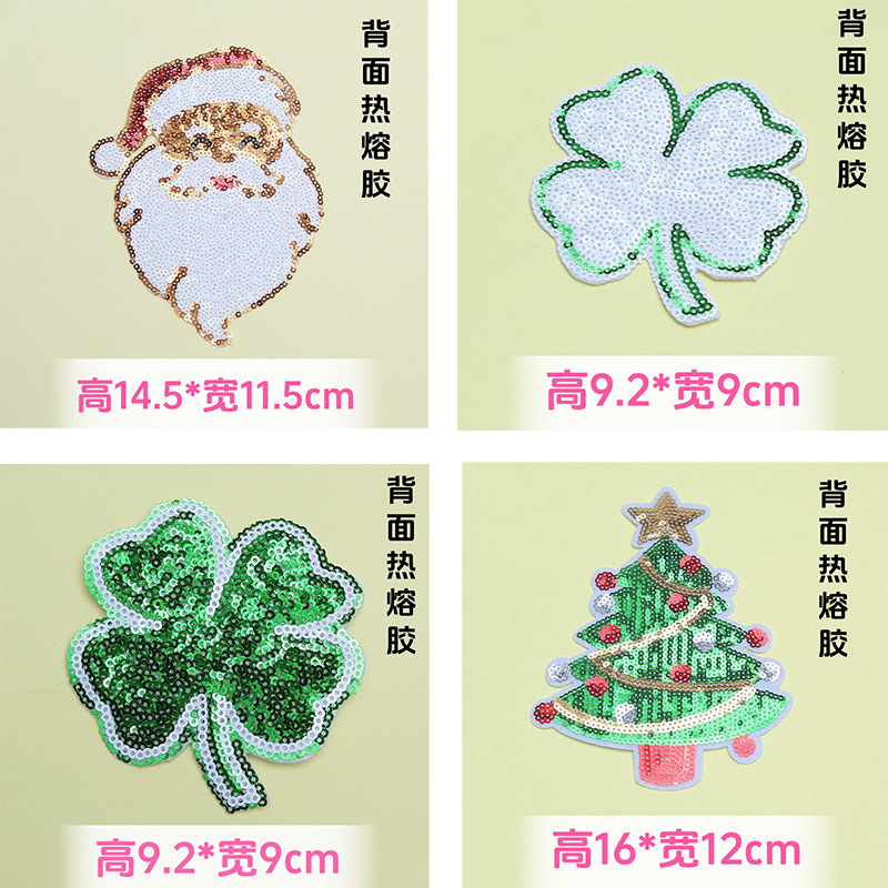 2025圣诞亮片服装辅料补丁布贴 圣诞树四叶草DIY礼服绣花章仔