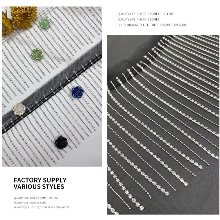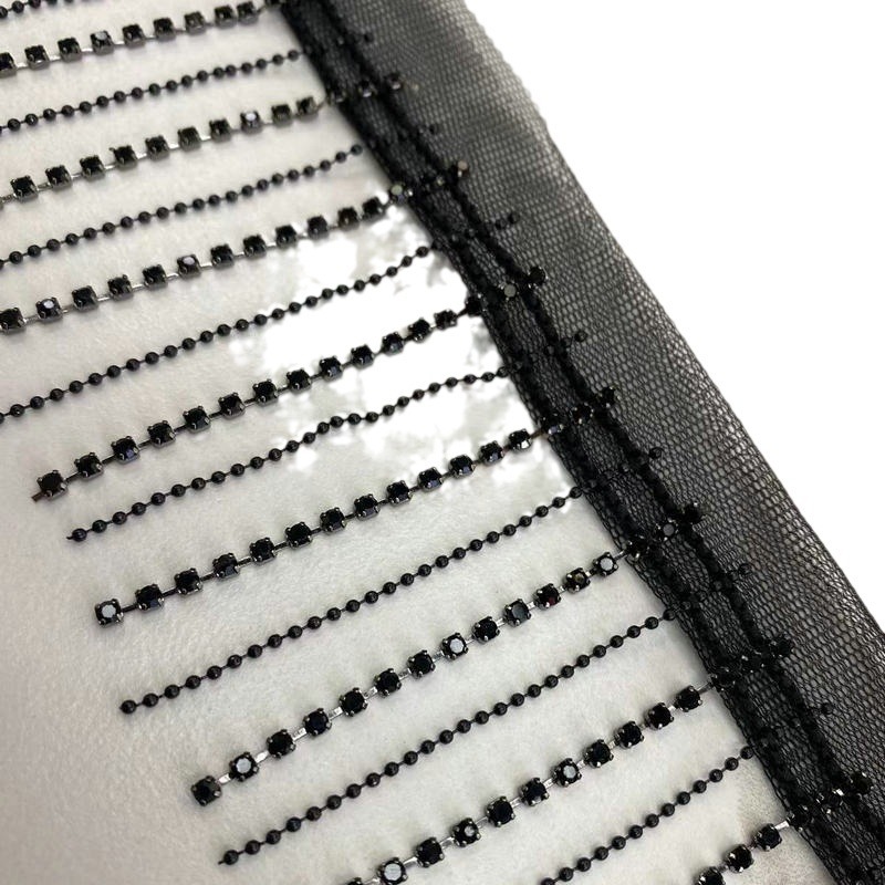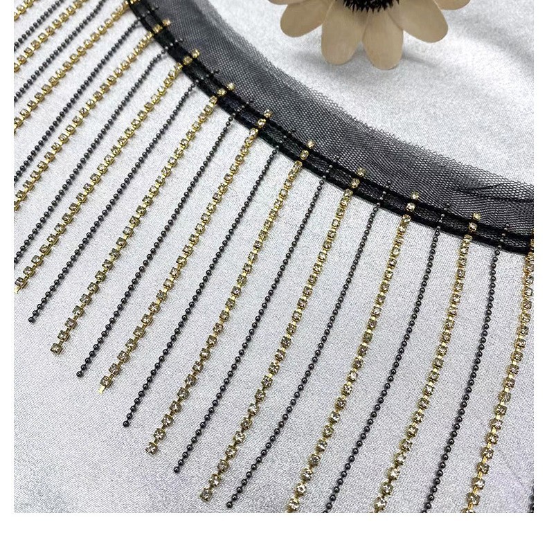 黑白网纱底水钻彩钻流苏钻链条服装辅料