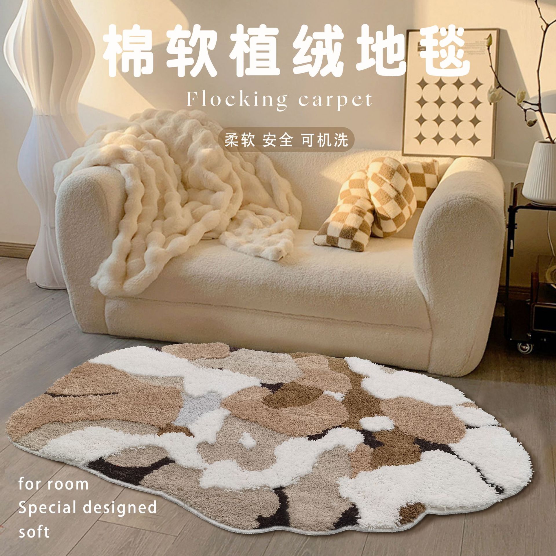 美拉德苔藓地毯跨境亚马逊可折叠提花地毯植绒威尔顿机织装饰地垫