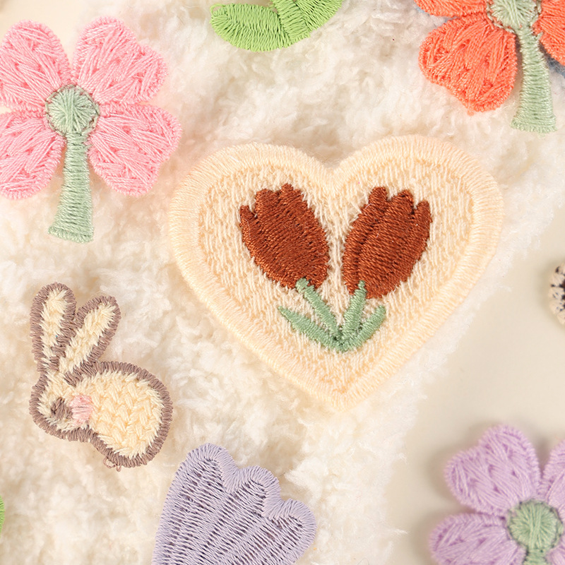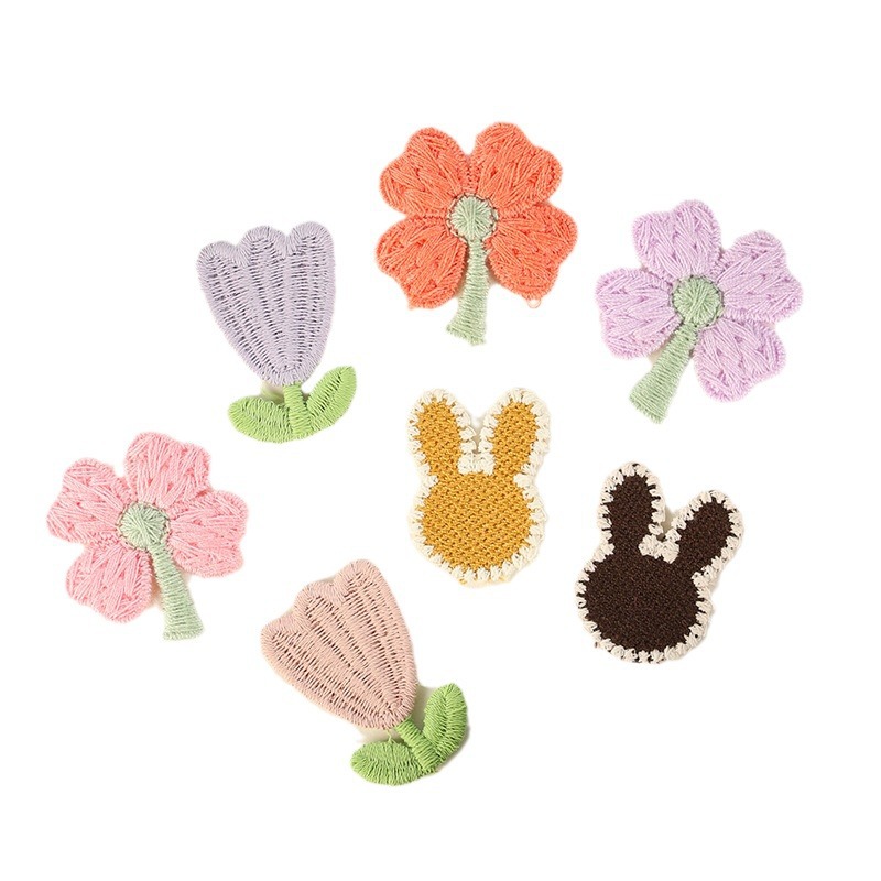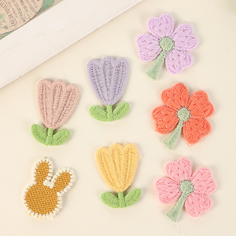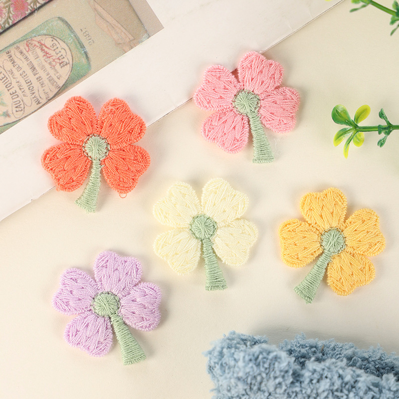 现货 清新简单郁金香刺绣补丁diy服装辅料 彩色可爱四叶草刺绣布