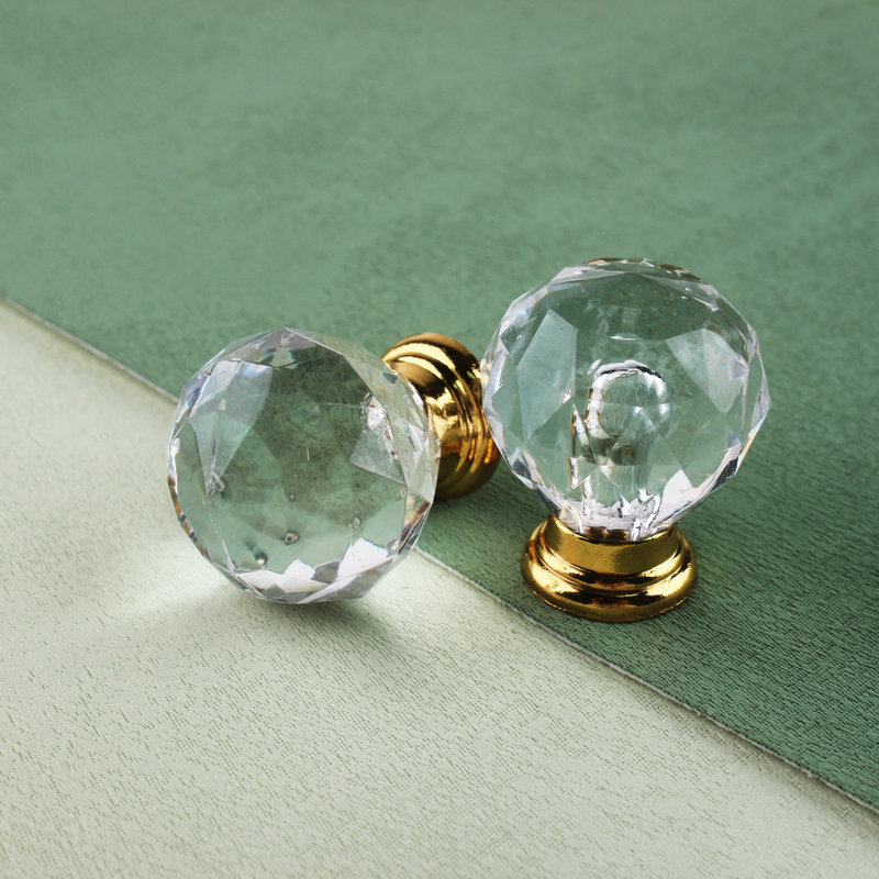 透明水晶拉手 单孔现代简约欧式衣柜门橱柜抽屉金色钻石圆形把手