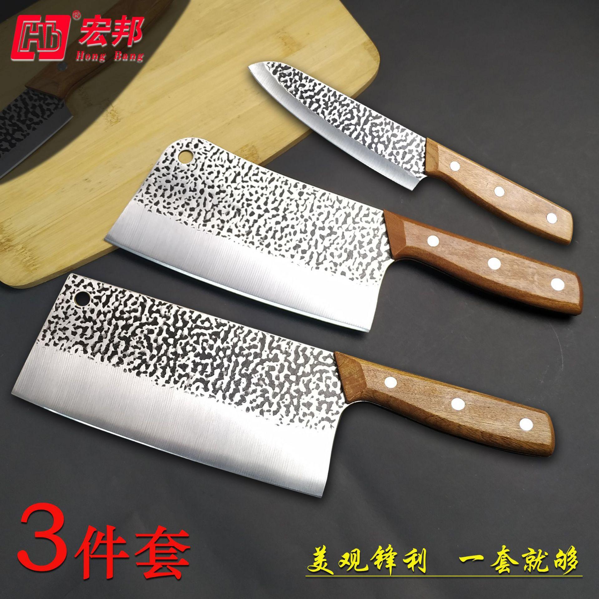阳江刀具套装厨房木柄不锈钢锻打菜刀锤纹家用砍骨刀切菜刀套刀