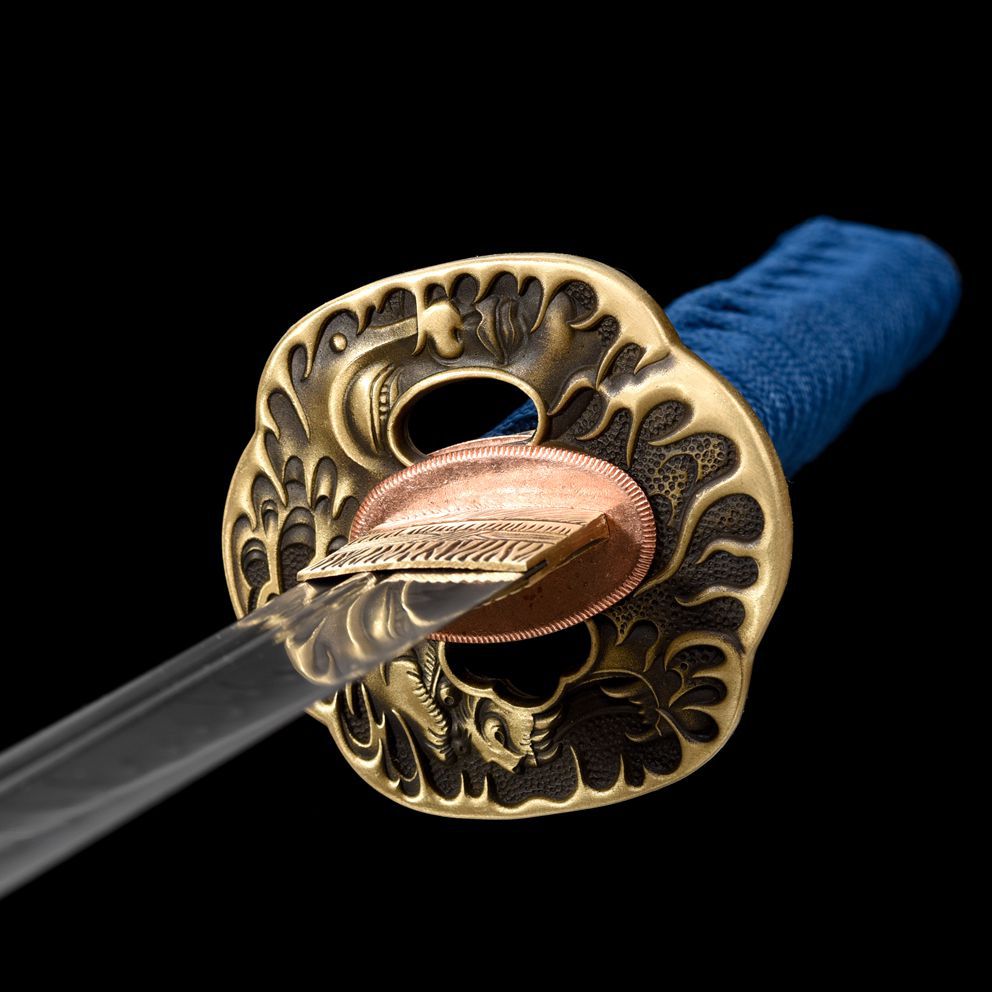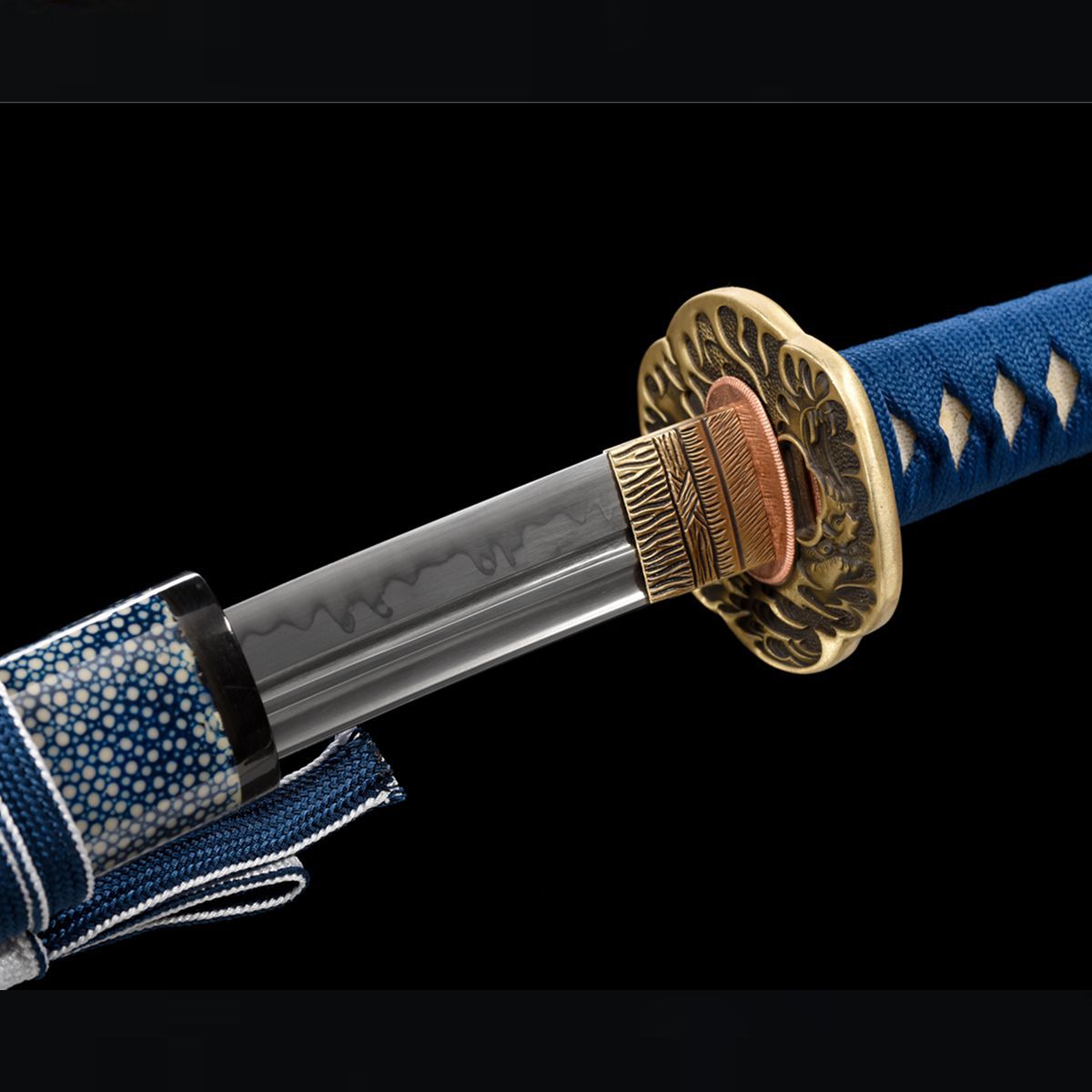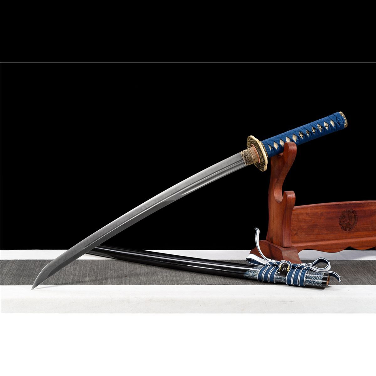 龙泉手工锻打刀剑T10钢烧刃小乌丸研磨灰半包鱼皮鞘冷兵器未开刃