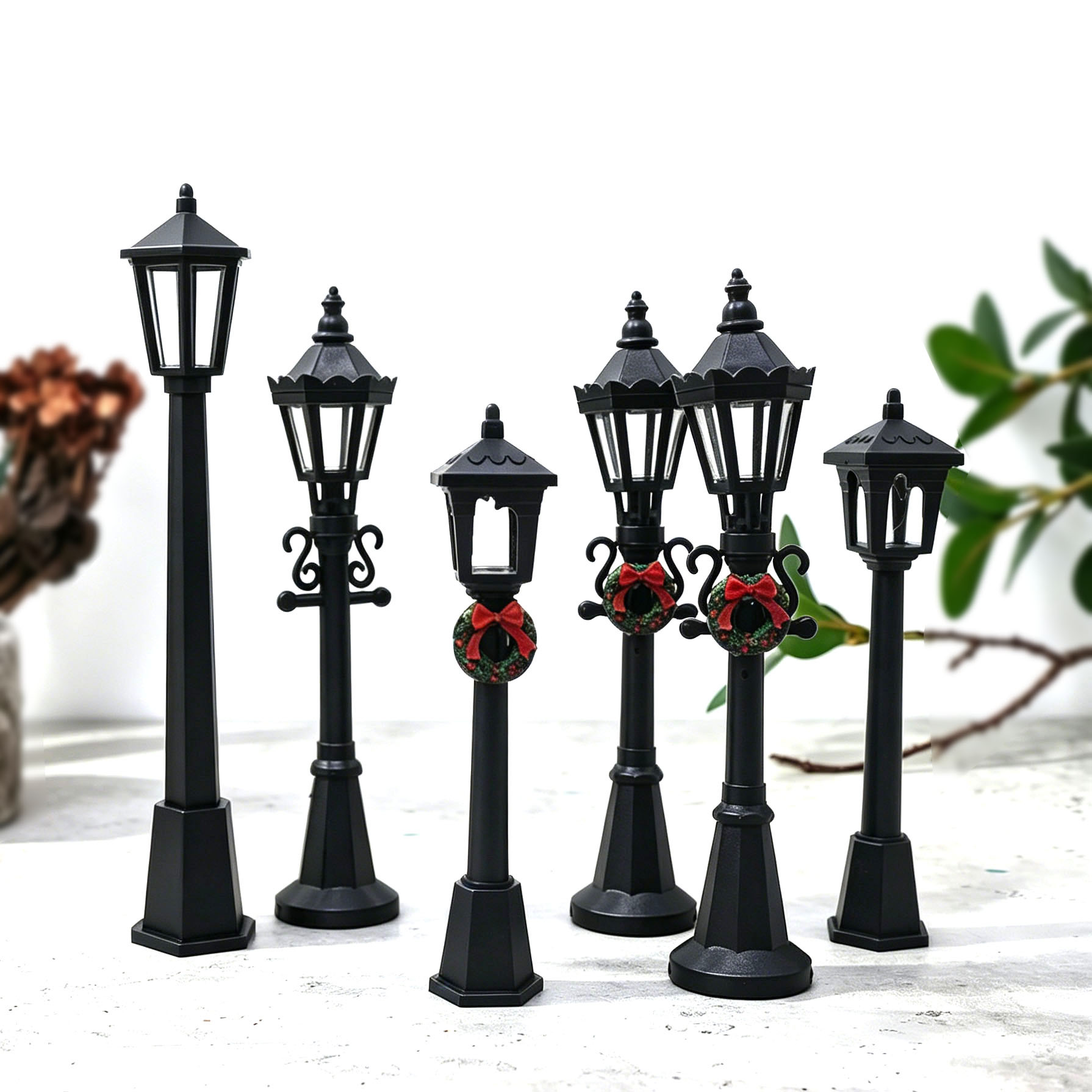 娃娃屋圣诞门庭迷你仿真花环路灯 BJD微景观场景道具装饰圣诞摆件