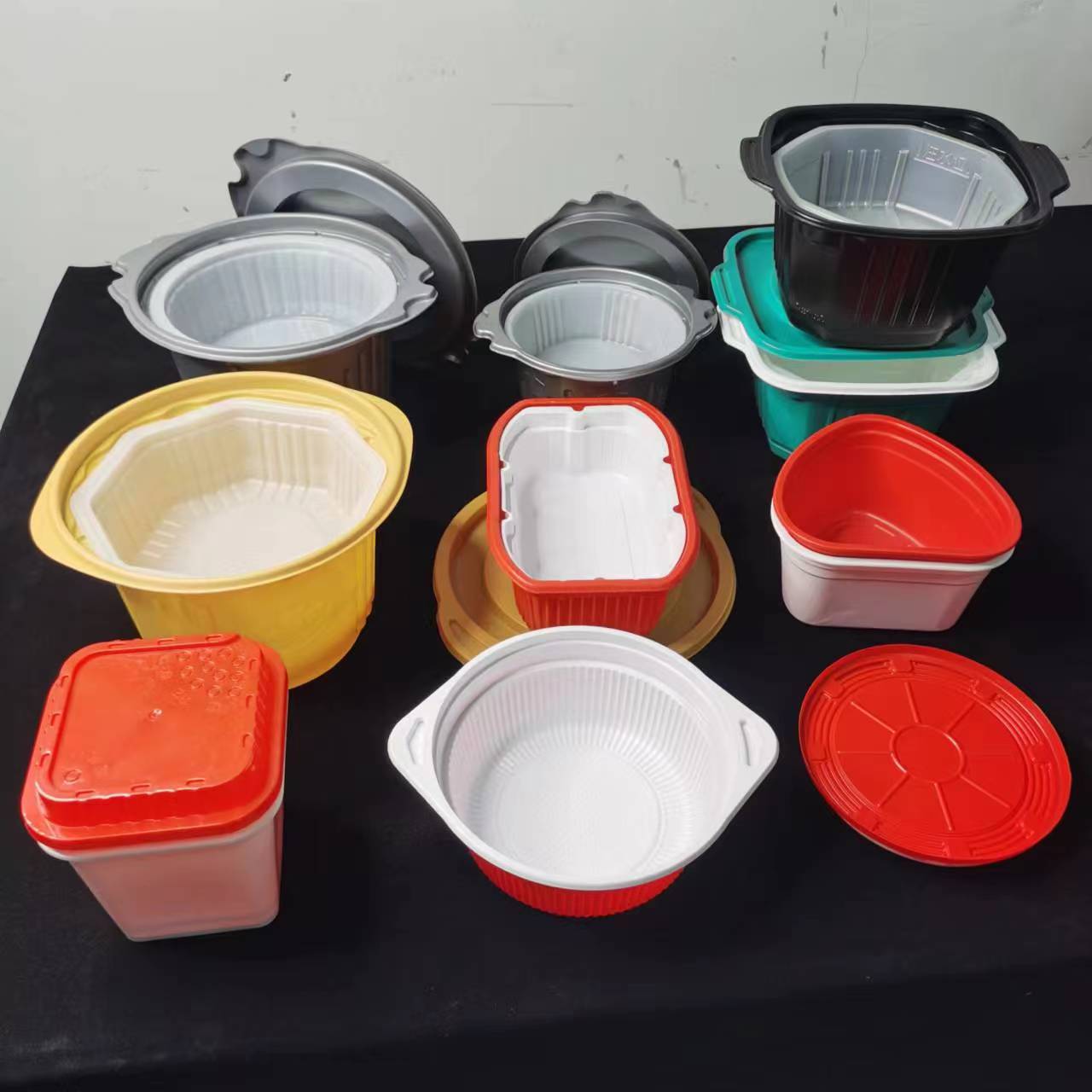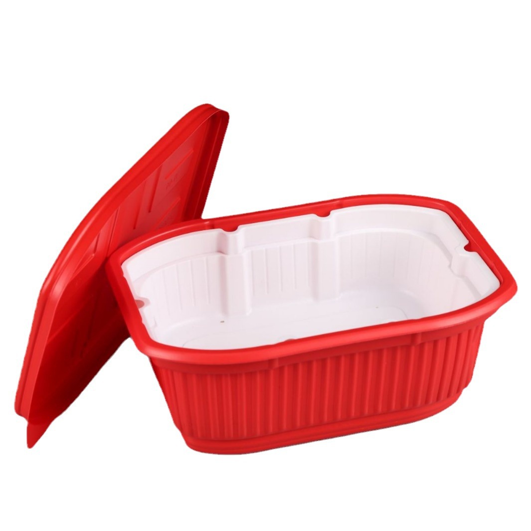 一次性塑料自热火锅盒加厚带盖多规格黑色红色商用打包盒批发