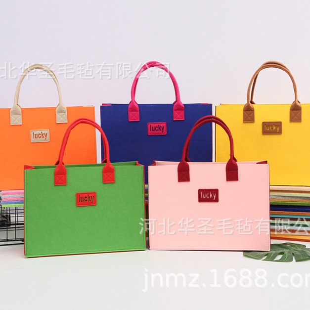 2024新款ins大容量多色毛毡手提托特包 抖音同款lucky便携毛毡包