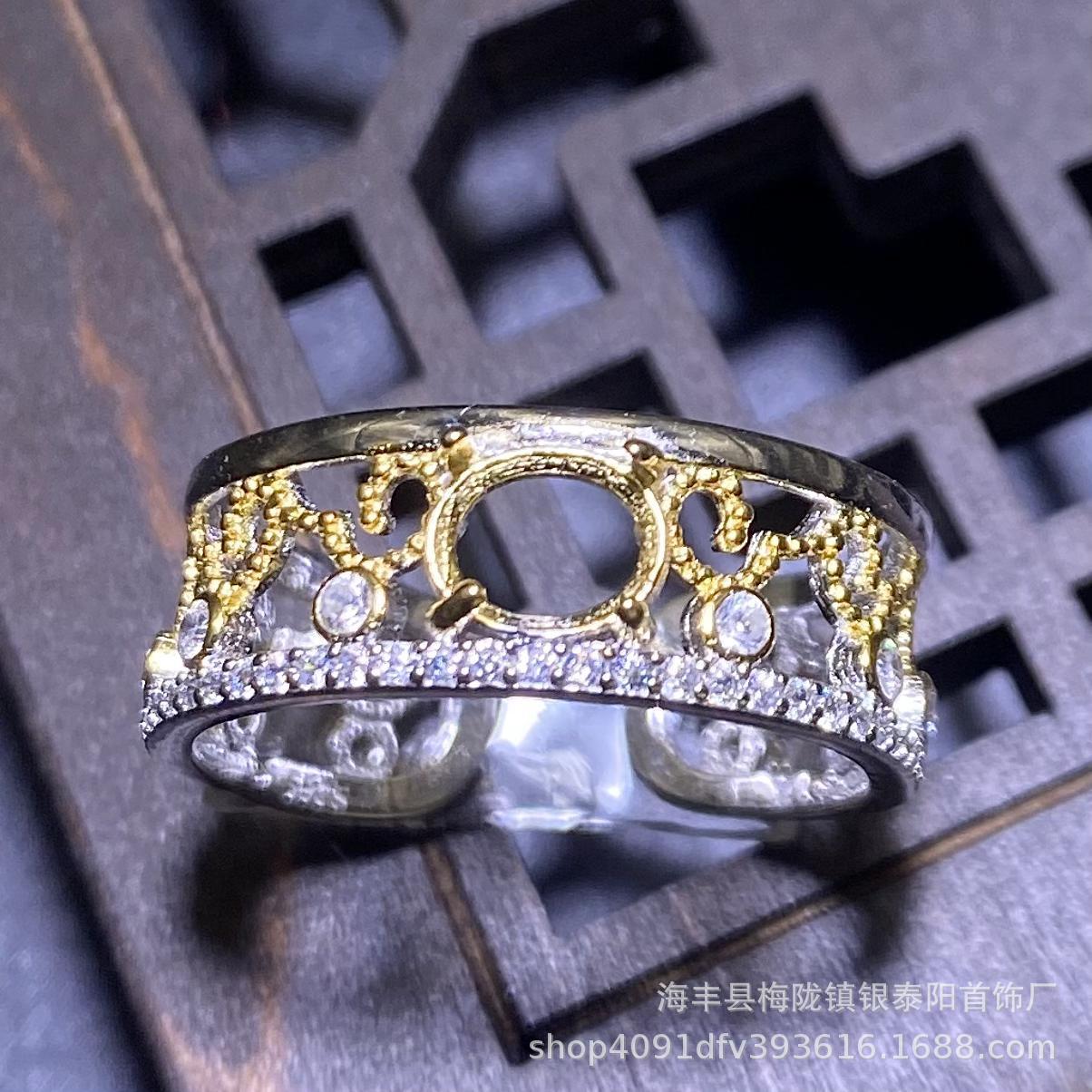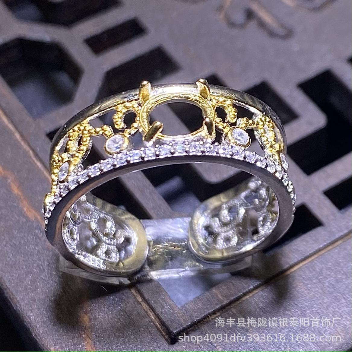 新款s925纯银托戒指翡翠危料简约时尚蛋面未镶嵌女空托diy戒托
