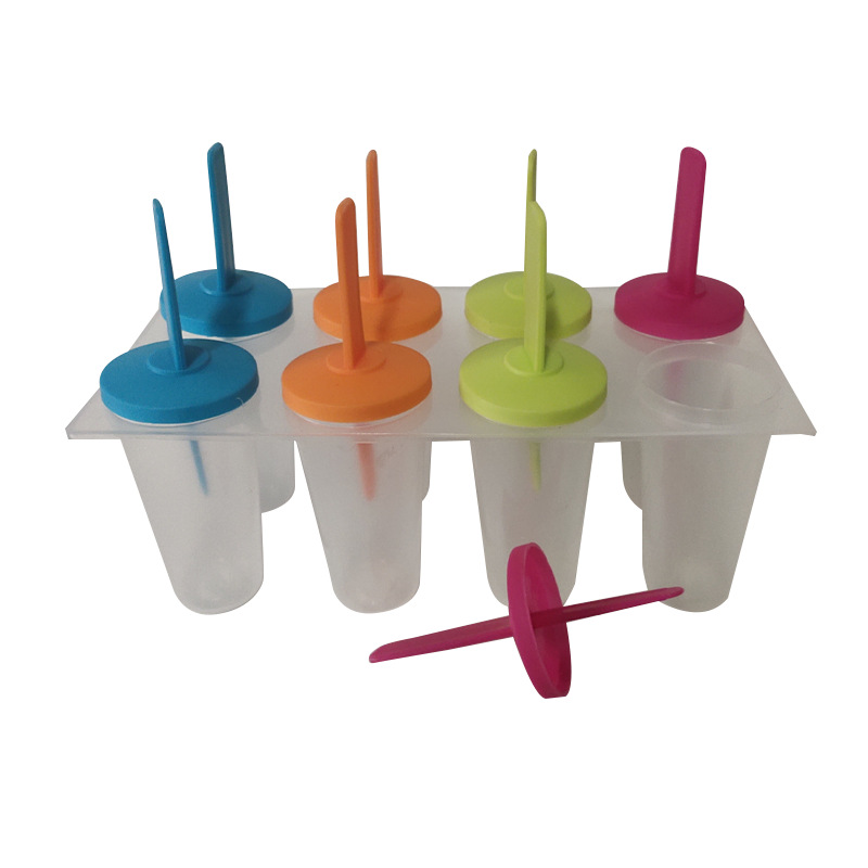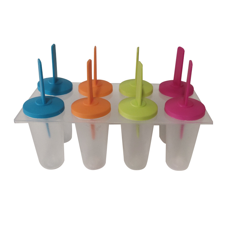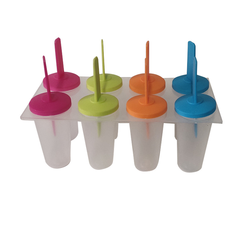 批发现货家用创意D|Y塑料冰模八组彩色迷你方形冰棒带盖雪糕模具