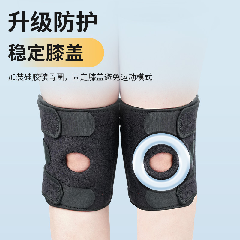 厂家批发护膝登山运动硅胶防滑护膝 户外骑行4弹簧支撑男女护膝
