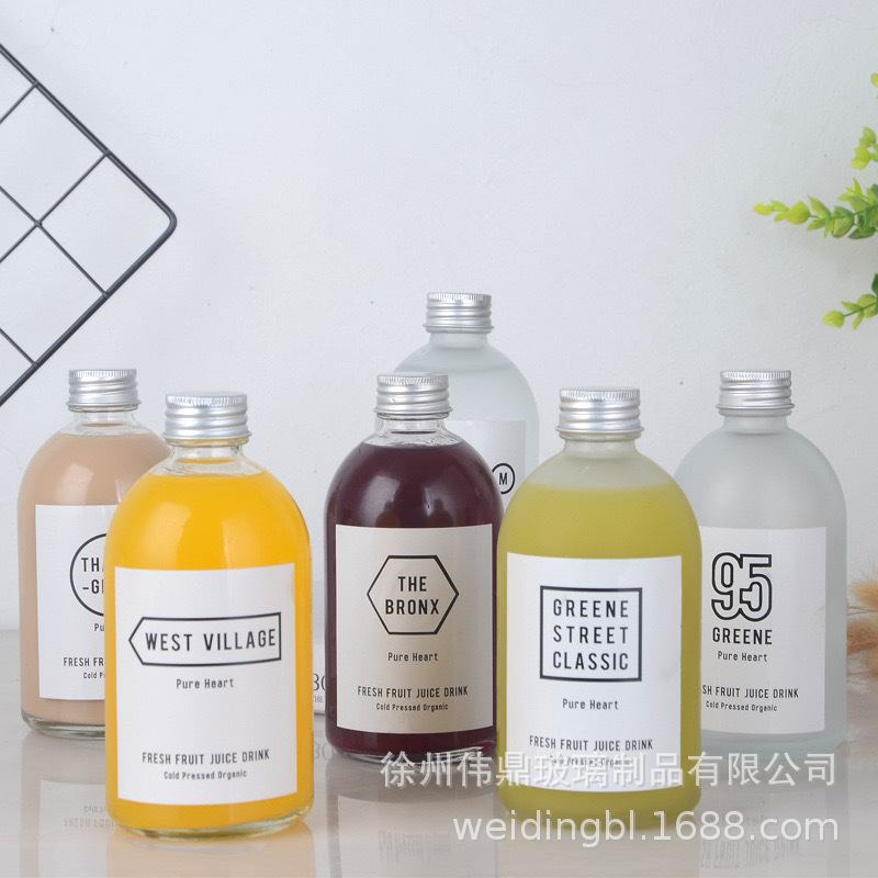 批发网红ins盐水瓶饮料瓶500ml果酒瓶奶茶透明咖啡磨砂玻璃瓶带盖