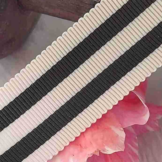 05恒成25mm黑白间色织带涤纶帽带服装饰品配件高密度牙边带厂家批