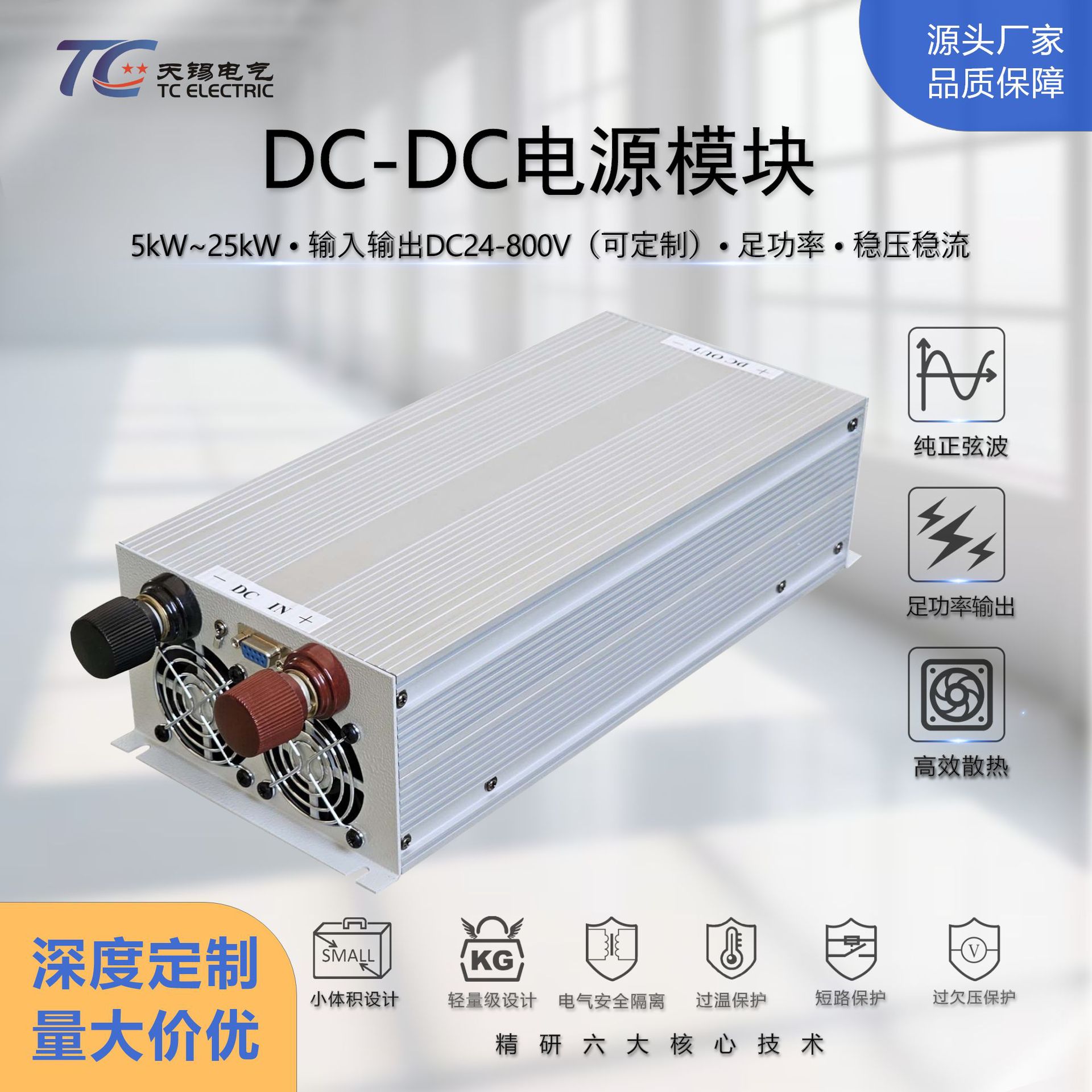 厂家直供5~25kW大功率DC-DC电源模块DC24-800V可调稳压工业级定制
