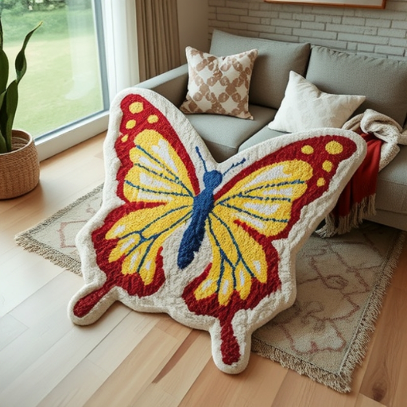 蝴蝶植绒地毯家用客厅耐脏礼品垫子凹凸可折叠可机洗装饰垫子簇绒