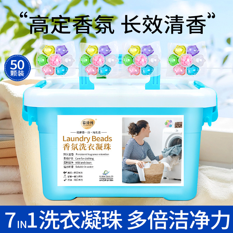 50颗盒装七腔洗衣凝珠留香珠持久留香花香10g七合一洗衣珠厂家