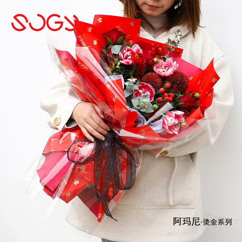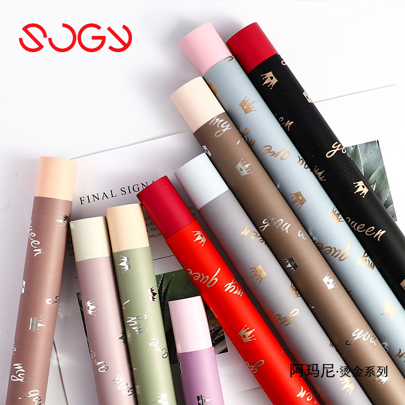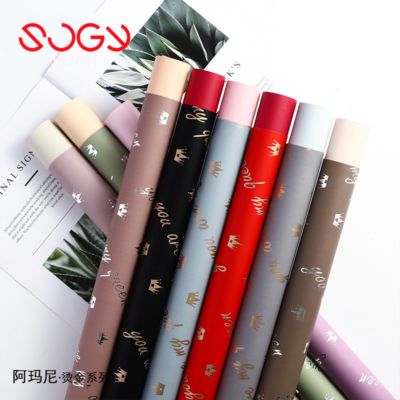 尚吉外贸新款皇冠烫金英文防水双色欧雅纸鲜花包装纸花艺包装材料