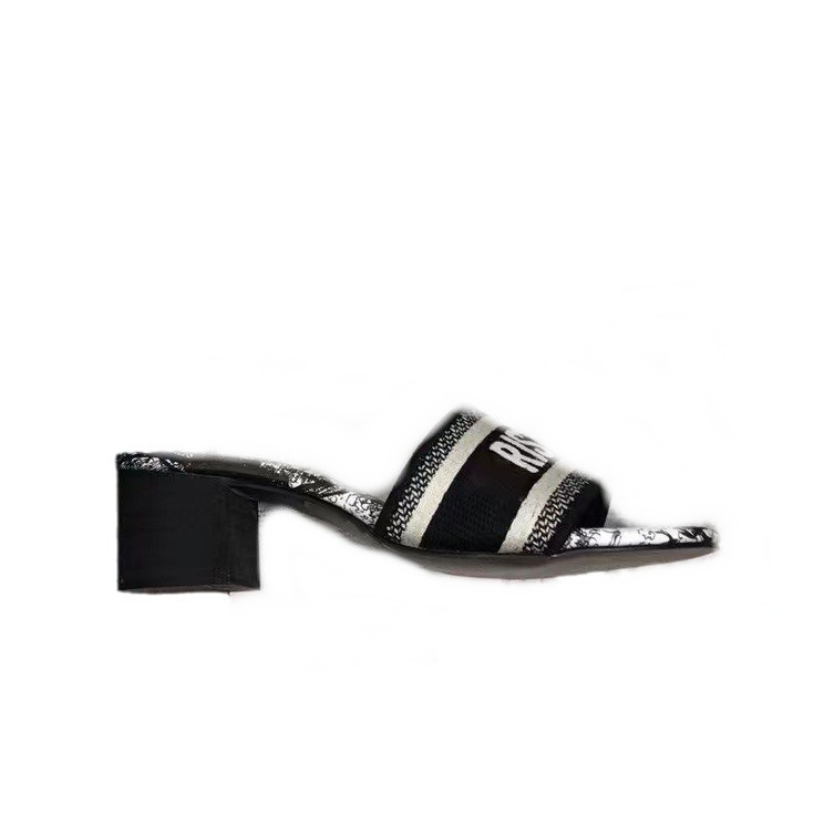 D家字母刺绣拖鞋女外穿2024夏季户外休闲粗跟一字拖休闲外贸凉拖