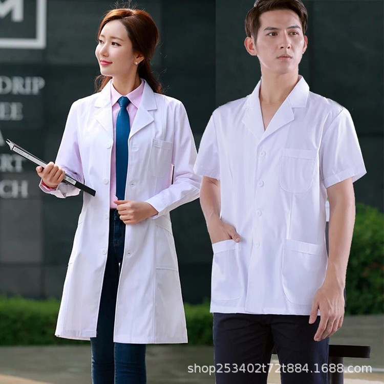 现货短袖白大褂实验服男医生服隔离衣棉护士服白大衣批发食品厂服