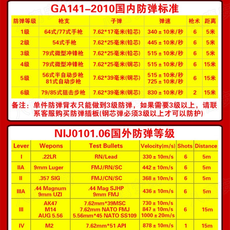 | 规格 | 芳纶2级防弹衣国内版软质防54 | 规格 | 芳纶3级防弹衣国内版软质防54.64.微冲 |