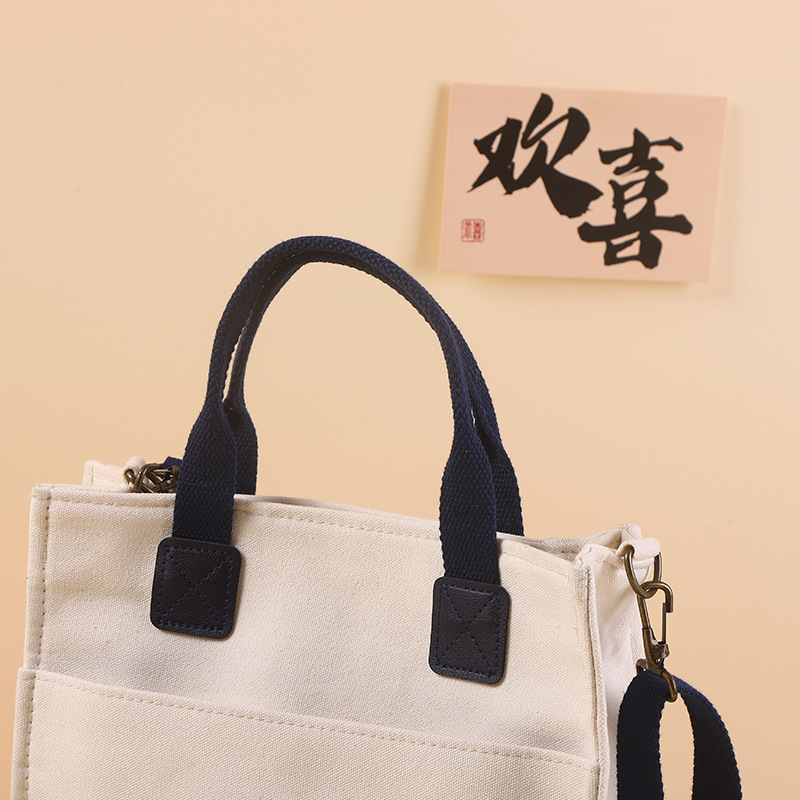手提帆布袋定制学生棉布袋简约大容量通勤斜挎帆布包帆布袋定制