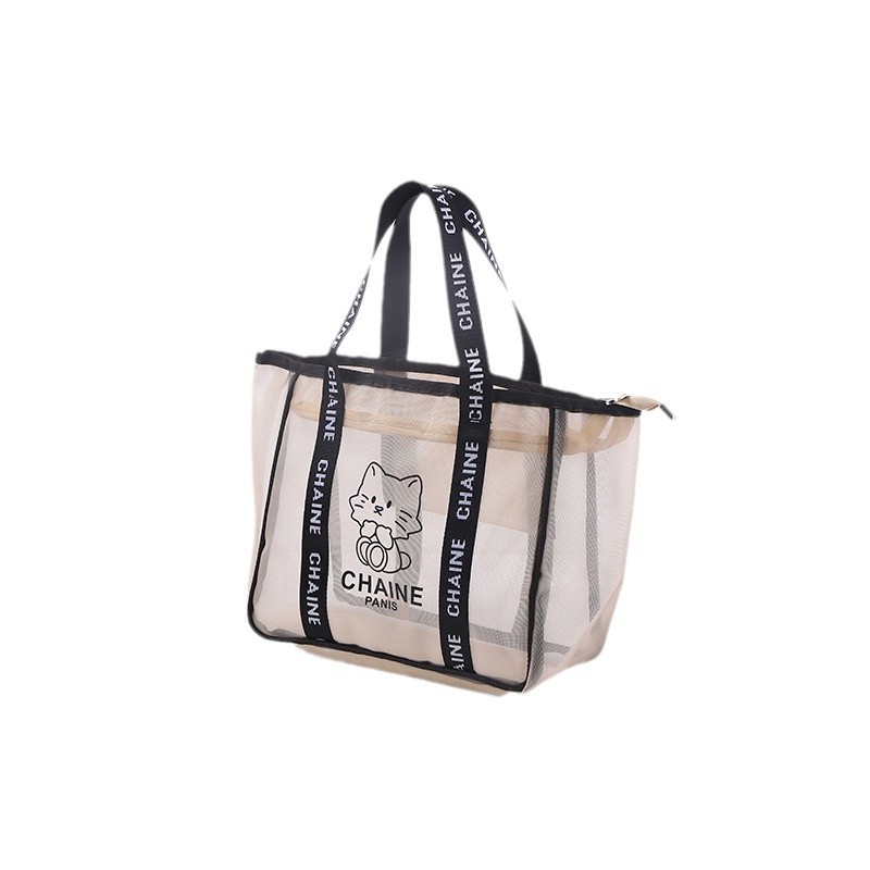 大容量镂空网纱手提袋定制尼龙沙滩包通勤可爱单肩手提网布袋定制