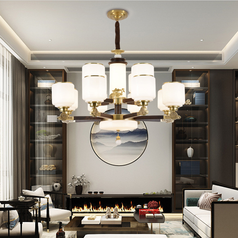 全铜新中式吊灯客厅灯中国风2025年新款大气别墅卧室餐厅简雅灯具