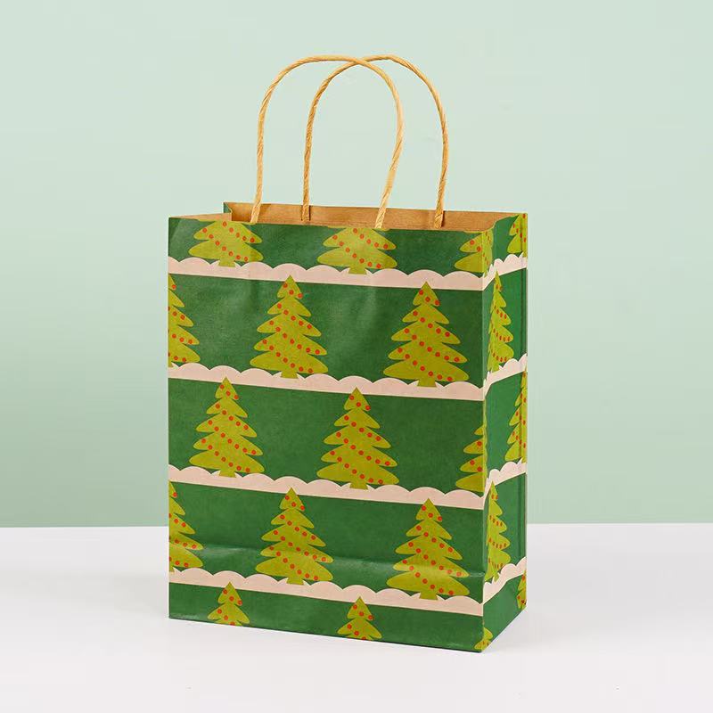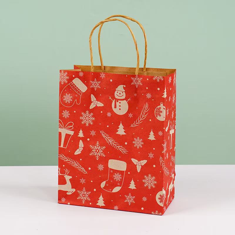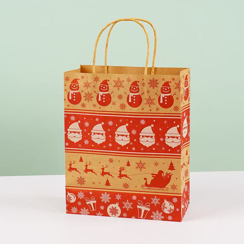 跨境亚马逊圣诞节纸袋节日礼物派对糖果礼品牛皮白卡纸袋套装批发