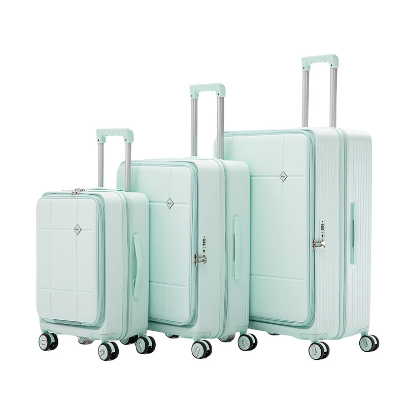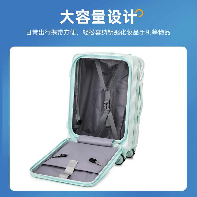 新款前开盖宽拉杆行李箱带USB充电杯架密码箱ABS男女登机旅行箱