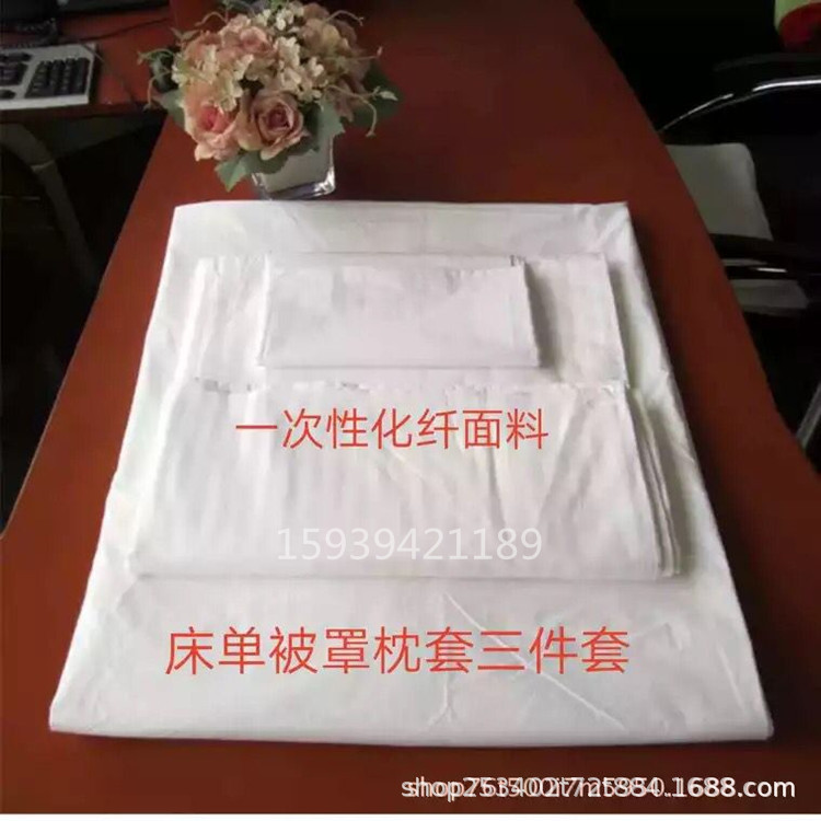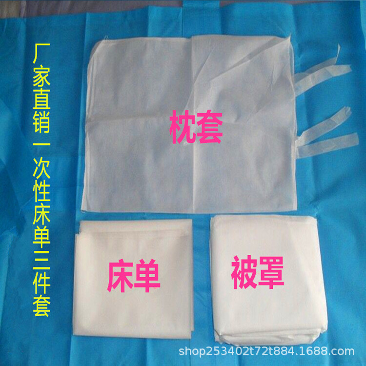 一次性医用床单被罩化纤涤纶加密加厚白色蓝被罩枕套三件套隔离衣
