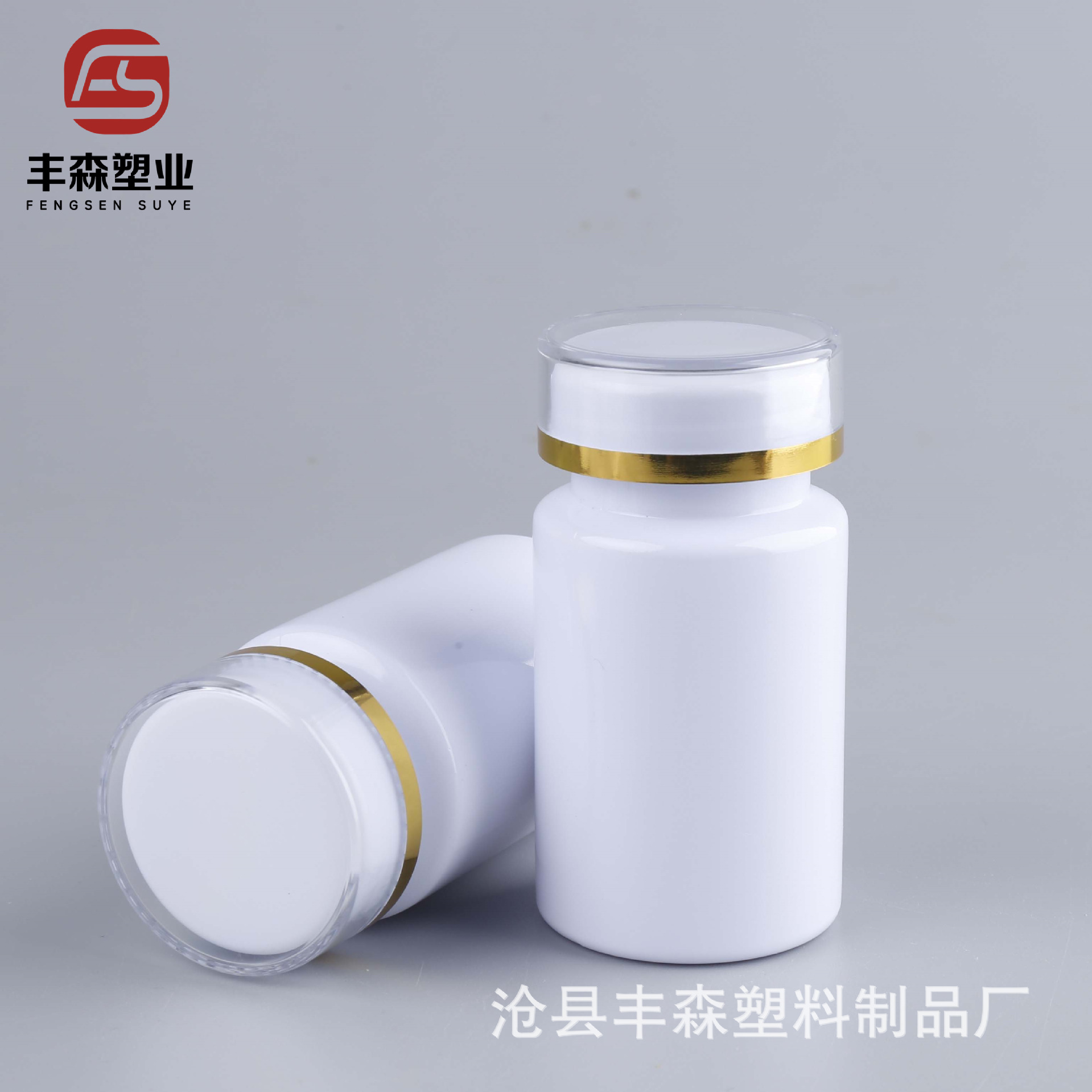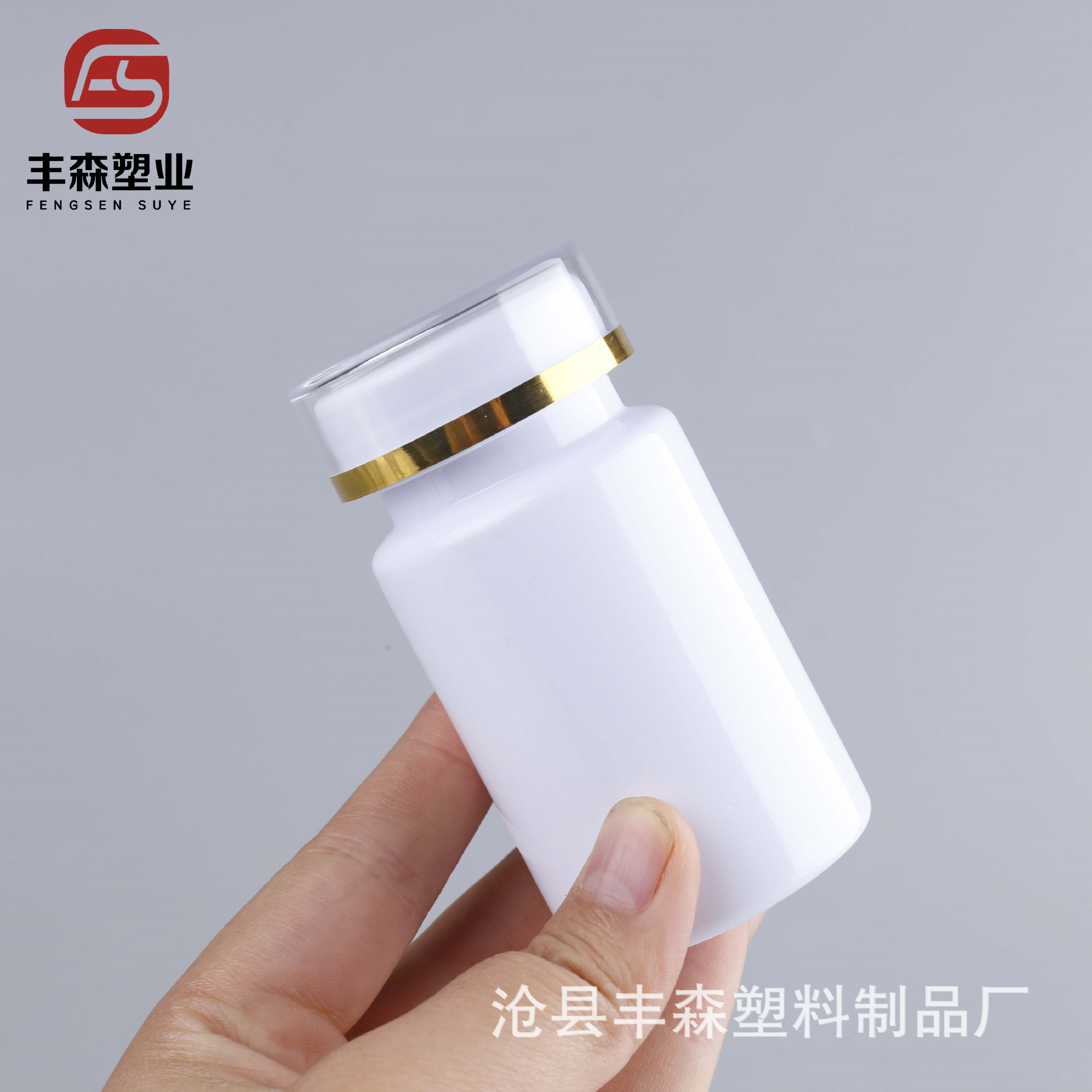 80cc双层盖银边瓶pet螺旋盖瓶保健品瓶维生素片剂避光分装瓶子