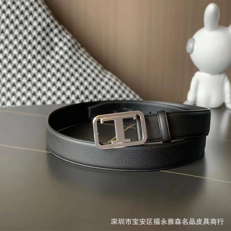 男士商务百搭皮带简约T字方形扣荔枝纹真皮腰带牛皮一件代发通勤