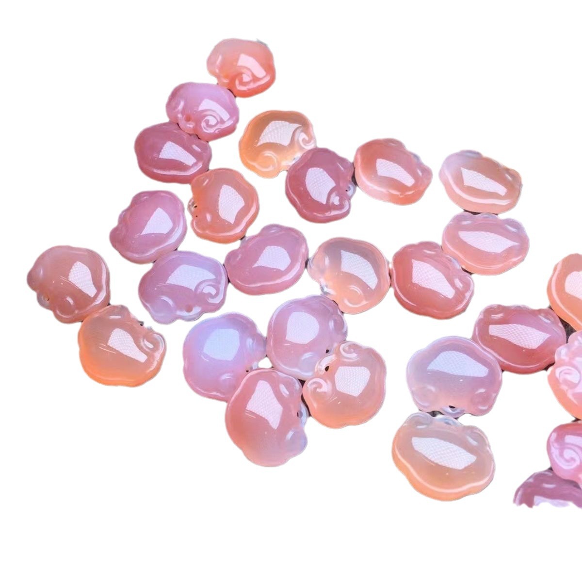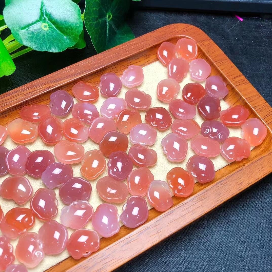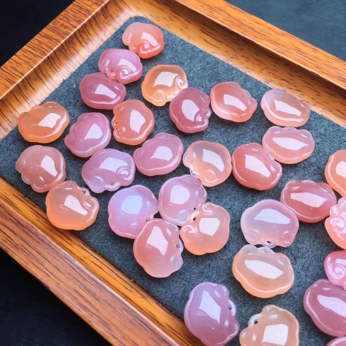 天然盐源玛瑙如意锁配饰绯红小饰品diy项链吊坠串珠配饰厂家批发