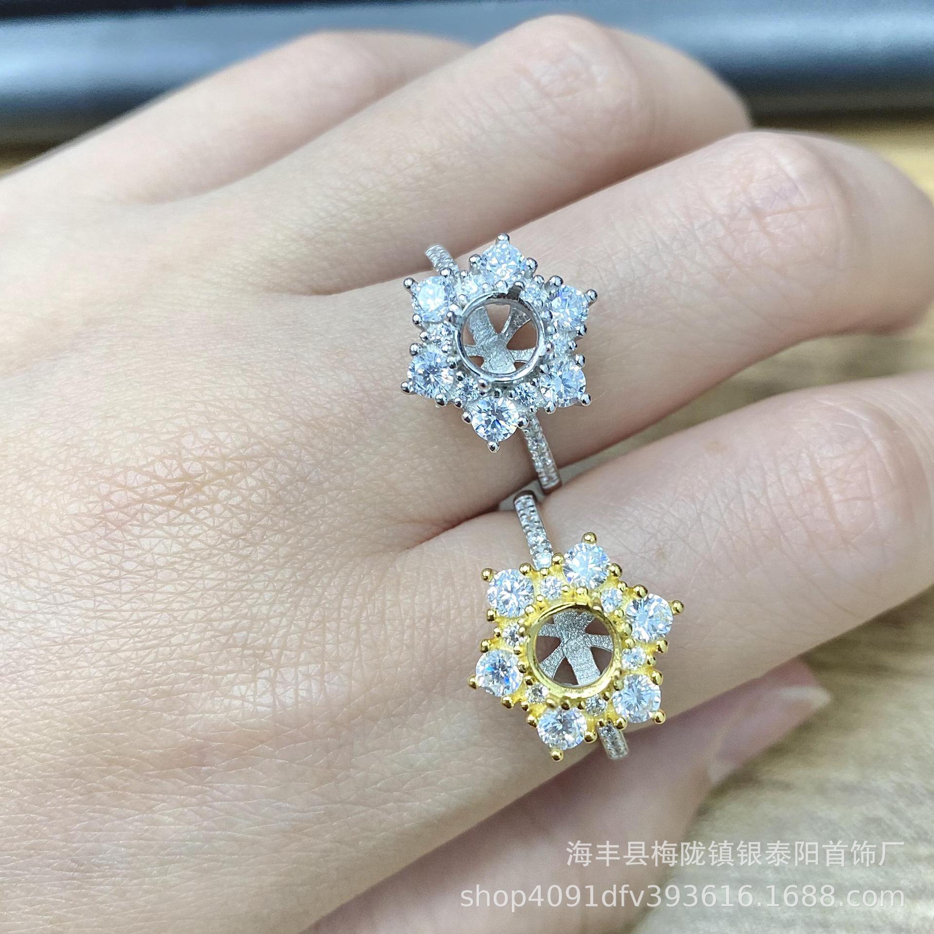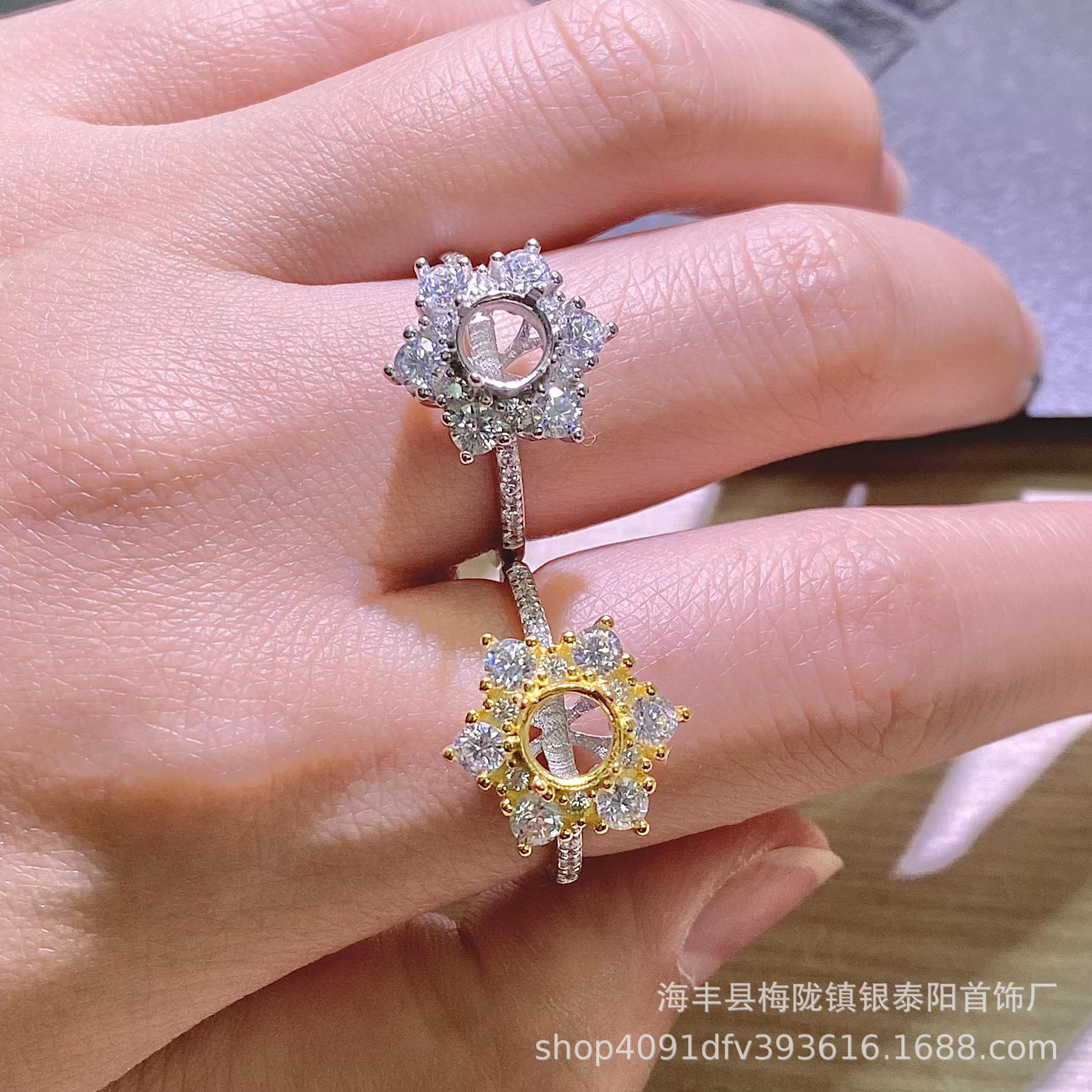s925纯银豪华重工戒指女银托翡翠蛋面轻奢空托饰品戒托批发