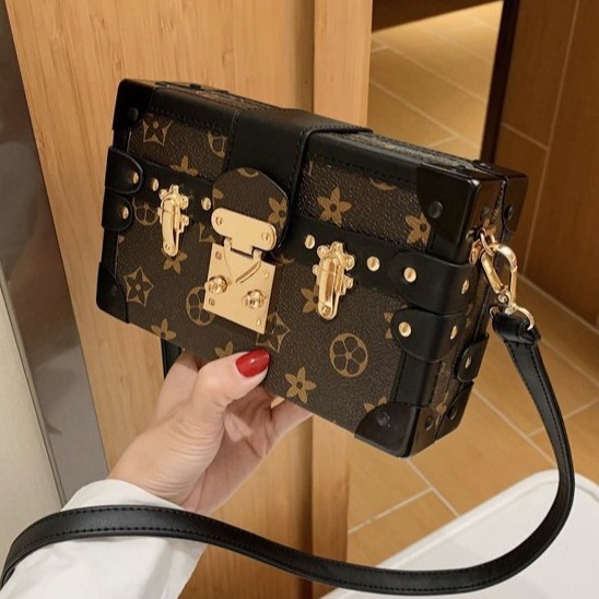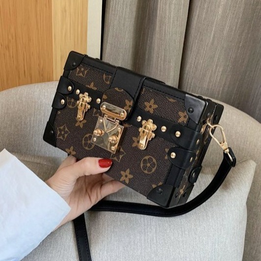 pu外贸包包女包2024新款单肩包欧美时尚铆钉复古ins斜挎包盒子包
