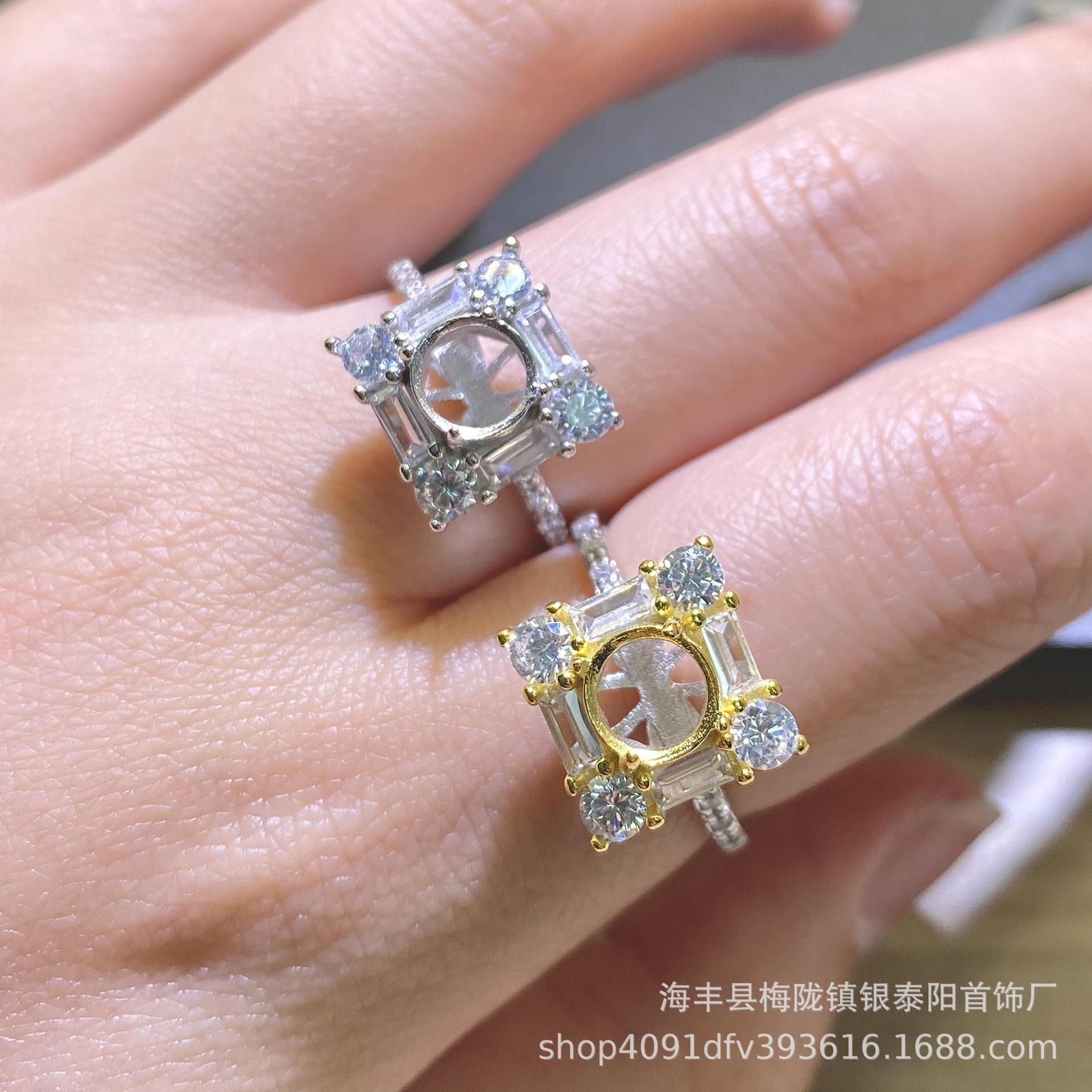 s925纯银豪华重工戒指女银托翡翠蛋面高级感小众空托工厂戒托批发