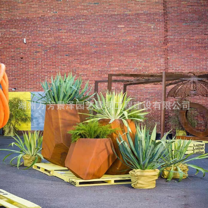 多种户外铁锈色钢板花箱围栏耐候钢花箱花盆花池江苏耐腐蚀花坛