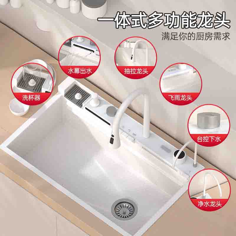 新款氛围灯大单槽 厨房304不锈钢洗菜盆家用数显飞雨白色鲸鱼水槽