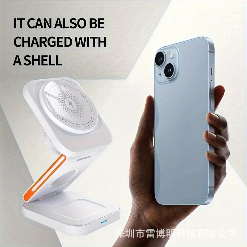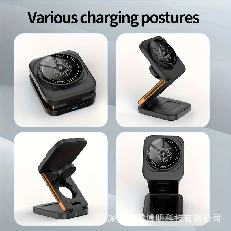 桌面多功能适用苹果立式折叠三合一磁吸支架手机数码无线充电器