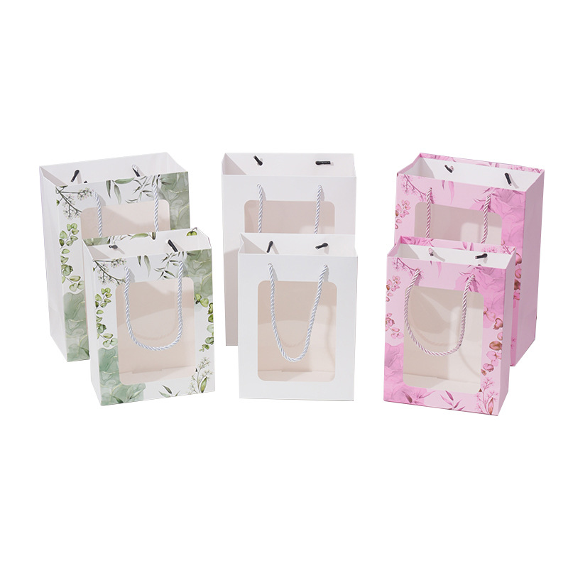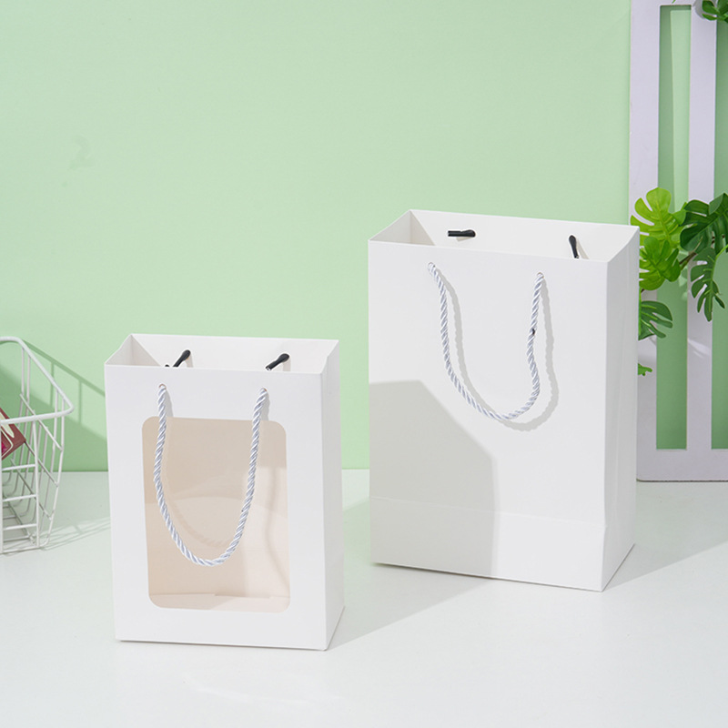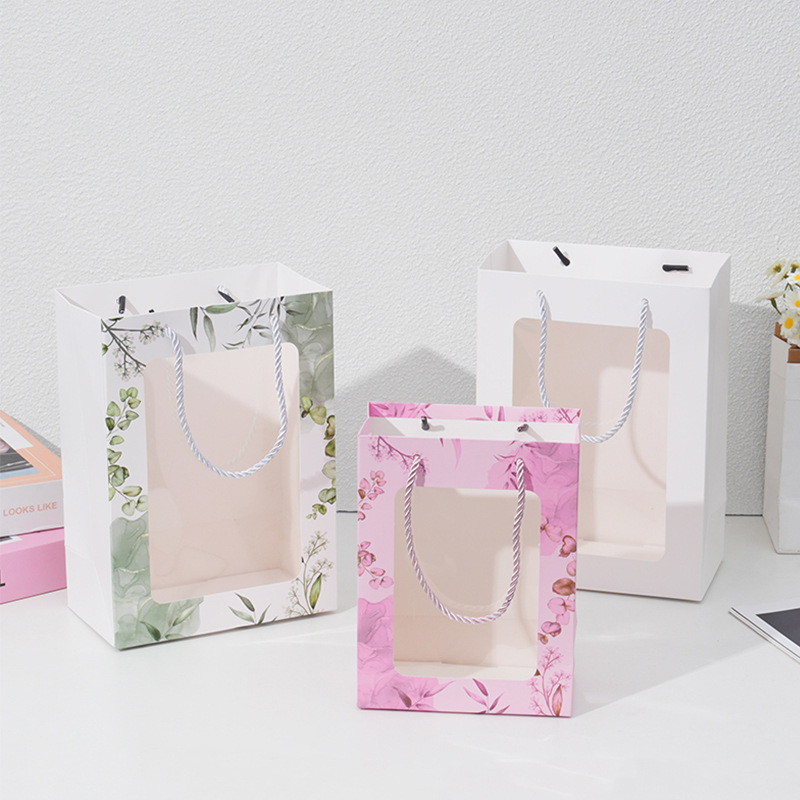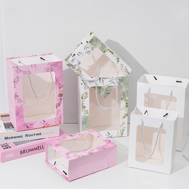 透明橱窗手提袋教师节鲜花花束伴手礼手提袋玩偶包装袋开窗礼品袋