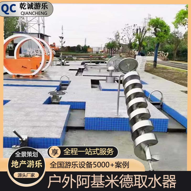户外阿基米德取水器公园不锈钢水闸踩水车景区公园小区戏水设备厂